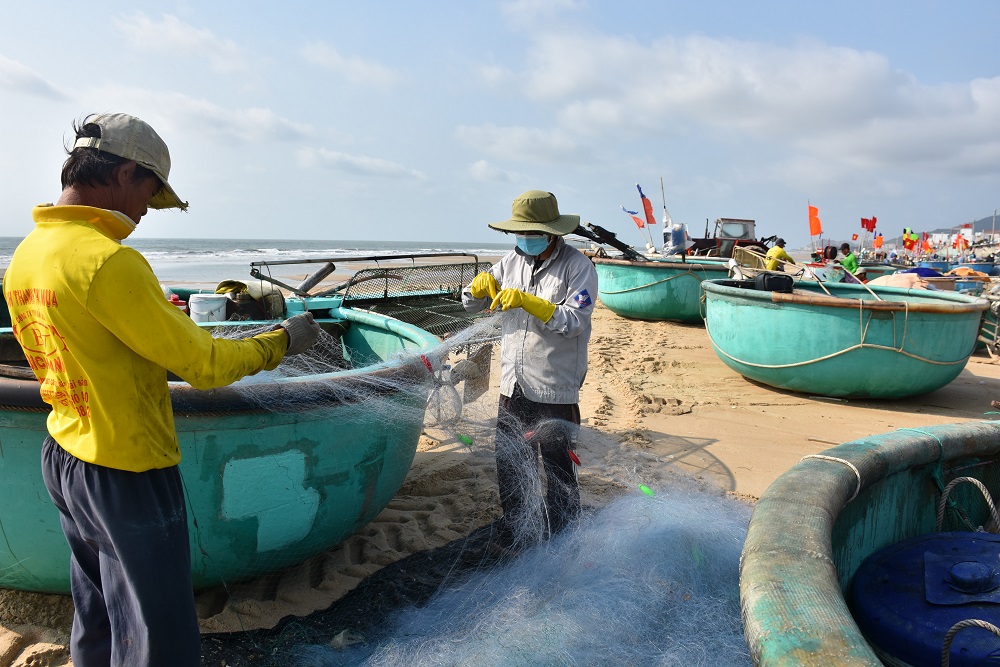 | Ngư dân tại TT.Phước Hải, huyện Đất Đỏ chuẩn bị ngư cụ cho chuyến đánh bắt đầu năm. |