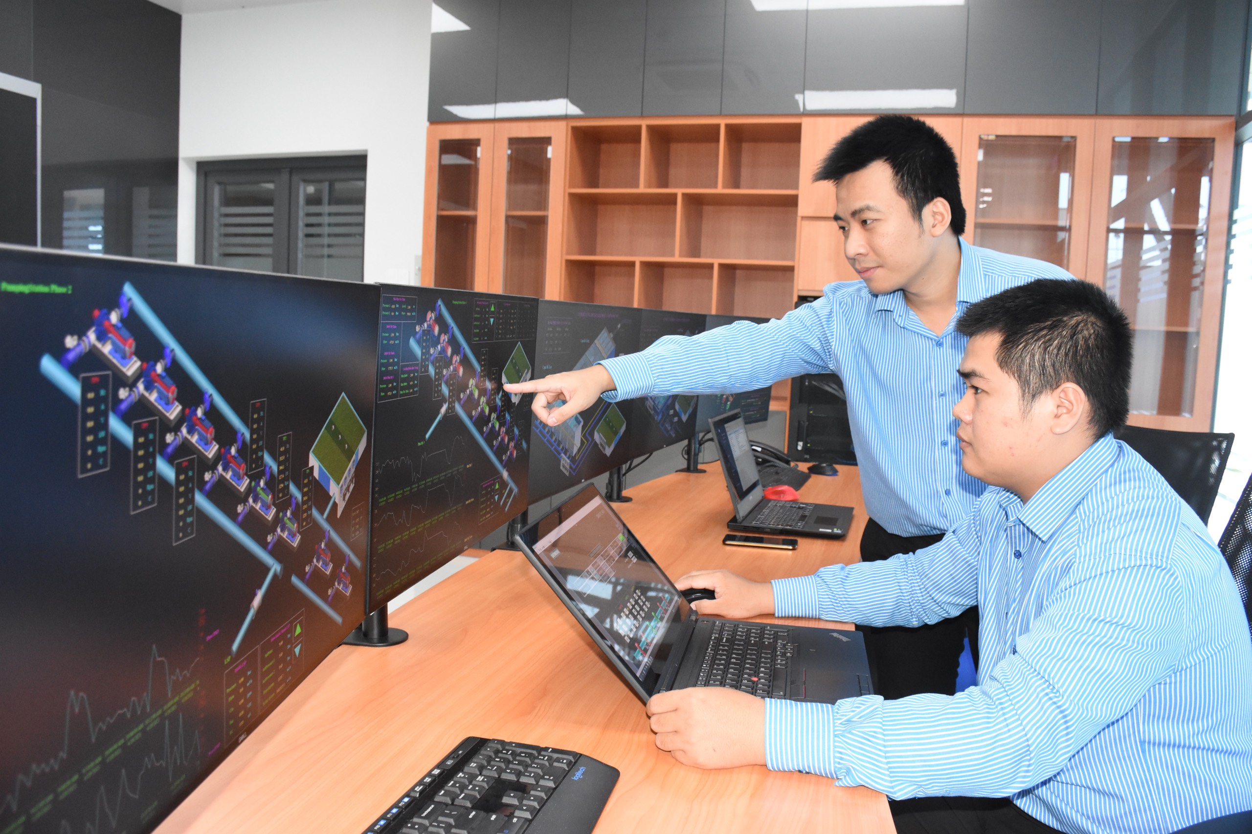 | Kỹ sư tự động hóa giám sát hoạt động sản xuất từ Trung tâm điều hành Công ty CP Cấp nước Châu Đức. |
