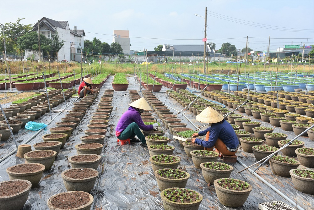 Được xem là hộ có diện tích trồng hoa lớn nhất tại xã Phước Long Thọ, huyện Đất Đỏ, hàng năm, gia đình ông Nguyễn Văn Hôn, luôn duy trì khoảng 100.000 chậu hoa các loại. Năm nay, do khó khăn về nguồn giống, chi phí tăng cao và lo ngại về thị trường tiêu thụ, ông buộc phải giảm 50% số lượng trồng. Theo ông Hôn, do dịch COVID-19, các địa phương thực hiện giãn cách xã hội nên việc đi lại mua cây giống gặp nhiều khó khăn, có những loài ông đã đặt cả nửa năm nay nhưng đến nay vẫn chưa có, khiến ông khá lo lắng sẽ không xuống giống theo đúng kế hoạch. Bên cạnh đó, năm nay chi phí đầu tư giống và phân bón tăng từ 20-30%, buộc ông Hôn phải tính toán kỹ lưỡng, tránh bị thua lỗ. “Thời điểm này năm ngoái, nhiều mối quen đã gọi điện đặt hàng hoặc cọc trước, nhưng hiện giờ các thương lái cũng e dè chưa dám đặt. Các lái buôn trước nay vẫn đặt hàng của chúng tôi nay cũng phải chờ thị trường và diễn biến dịch bệnh mới dám đặt mua”, ông Hôn buồn bã cho hay.