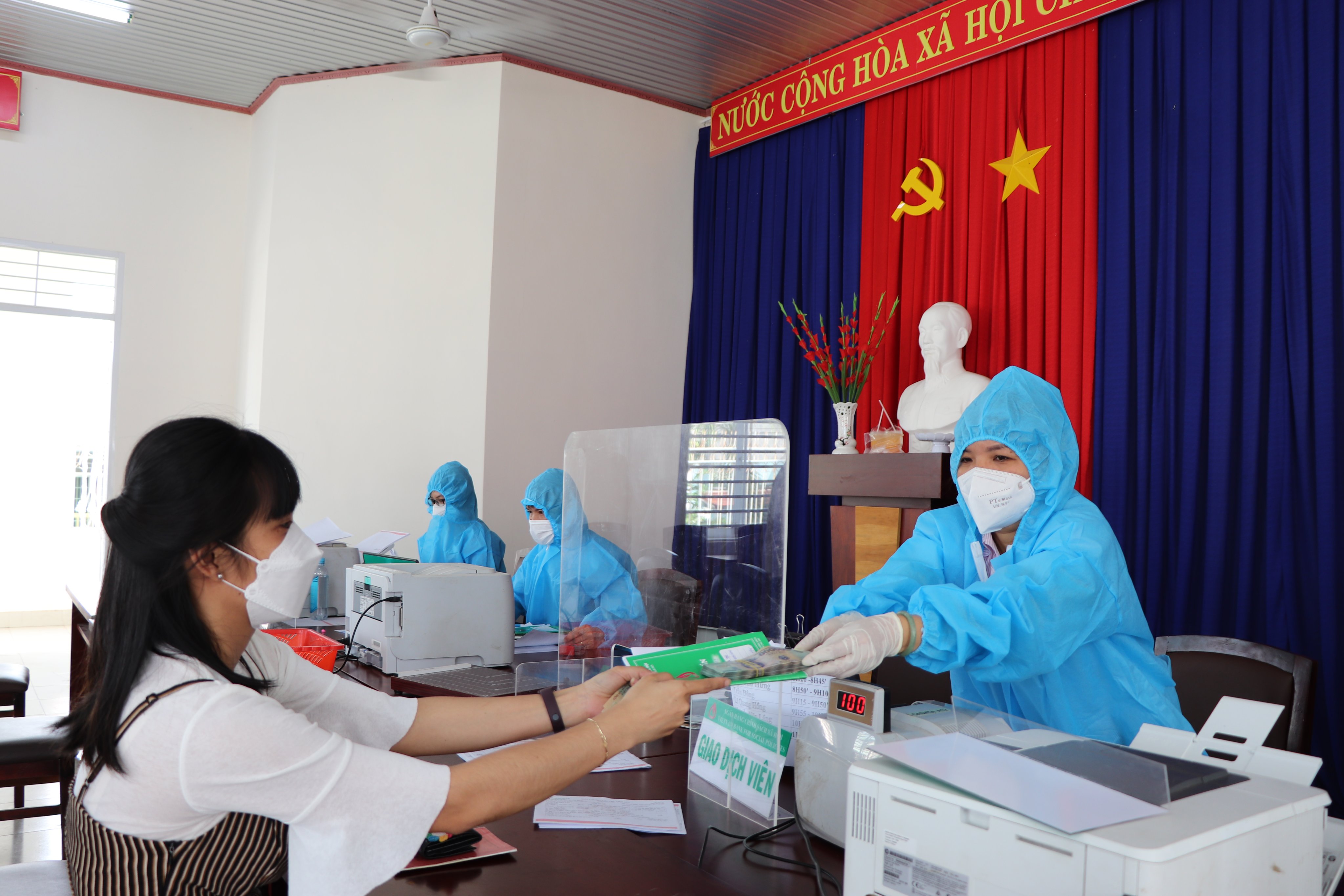 Để bảo đảm an toàn trong phòng, chống dịch COVID-19, Phòng Giao dịch NHCSXH huyện tổ chức điểm giao dịch tại Trung tâm Văn hóa học tập cộng đồng xã Láng Lớn và trụ sở KP. Vinh Thanh, TT. Ngãi Giao. Người dân đến giao dịch đều được thông báo trước và chia theo khung giờ, tránh tập trung đông người.