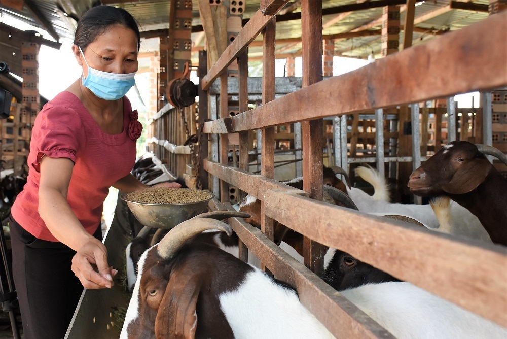 | Nhiều chính sách hỗ trợ người dân phát triển kinh tế được UBND huyện Xuyên Mộc triển khai giúp người dân nâng cao thu nhập. Trong ảnh: Mô hình nuôi dê của gia đình bà Nguyễn Thị Nga, xã Xuyên Mộc. |
