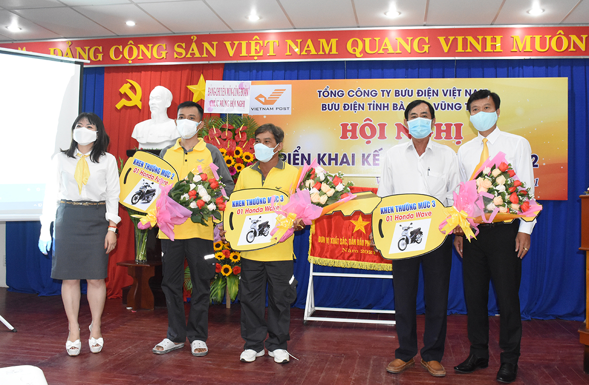Tại Hội nghị, thừa ủy quyền của Bộ TT-TT, ông Lê Văn Tuấn, Giám đốc Sở TT-TT đã trao Cờ "Đơn vị xuất sắc dẫn đầu phong trào thi đua năm 2021" của Bộ TT-TT và Cờ thi đua của Công đoàn Bộ TT-TT vì có thành tích xuất sắc trong năm 2021 cho Bưu điện tỉnh. Bưu điện tỉnh trao Bằng khen của Bộ TT-TT cho các tập thể và cá nhân xuất sắc; Giấy khen của Hội đồng thành viên Tổng Công ty Bưu điện Việt Nam cho 10 Gương mặt cá nhân tiêu biểu xuất sắc năm 2021; tặng 3 xe máy cho 3 bưu tá xuất sắc năm 2021.