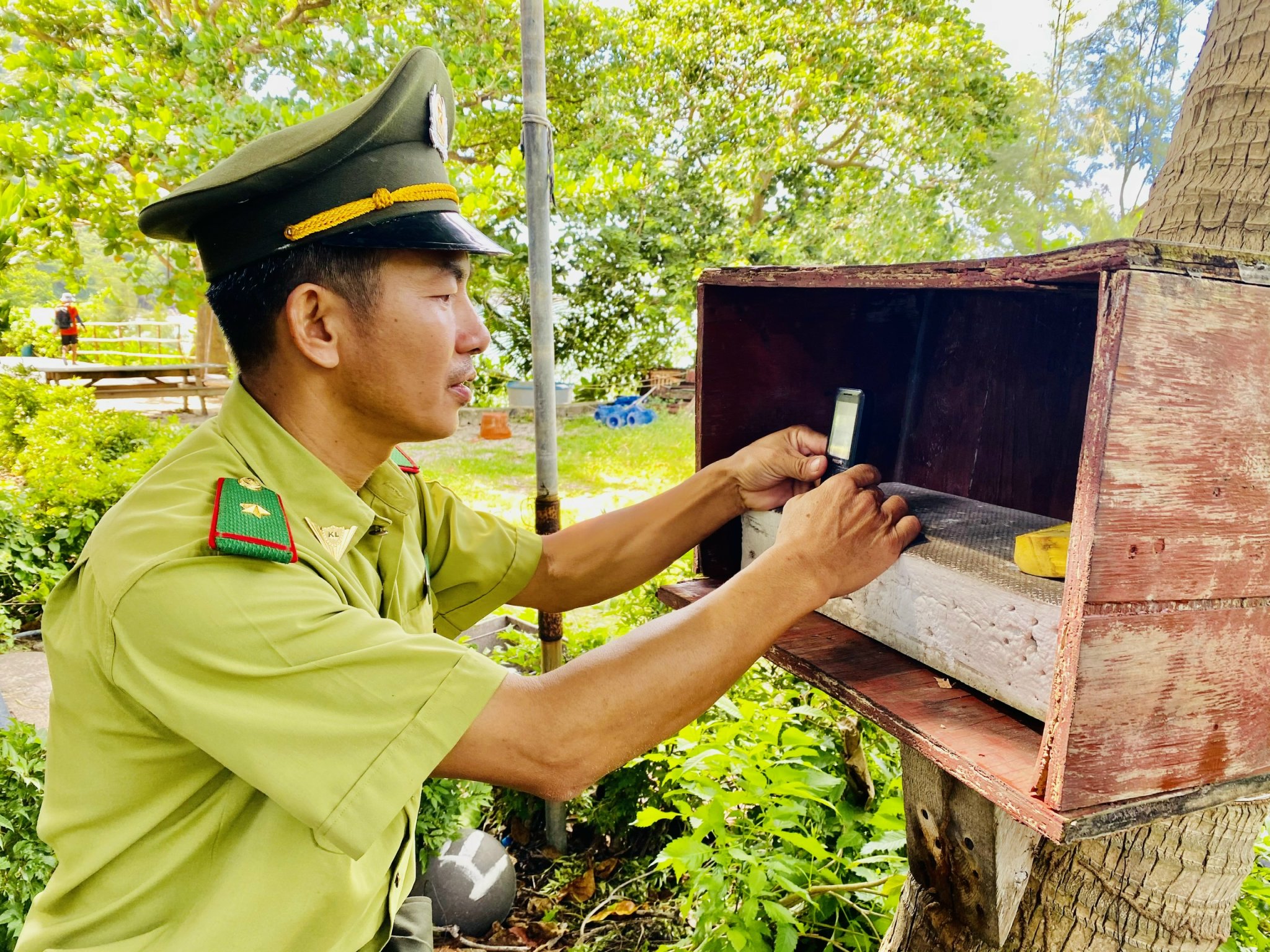 | Lực lượng kiểm lâm trên hòn Bảy Cạnh kiểm tra trứng ấp. |