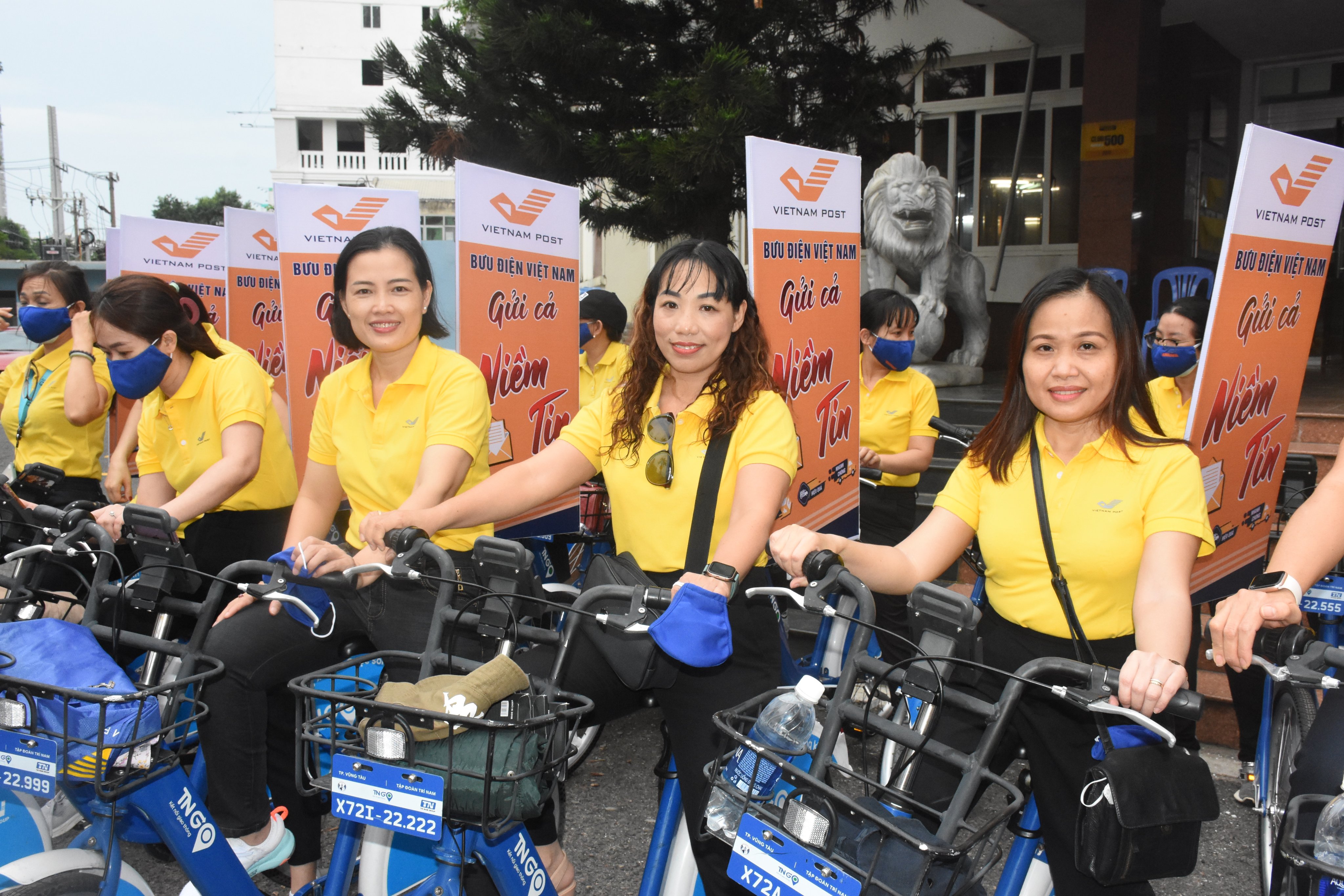 Tại buổi lễ ra quân, nhân viên Bưu điện tỉnh đã đạp xe kết hợp tuyên truyền, quảng bá chương trình dọc các tuyến đường chính tại 7 huyện, thị xã, thành phố nhằm giúp người dân và DN nắm được thông tin và tham gia chương trình.