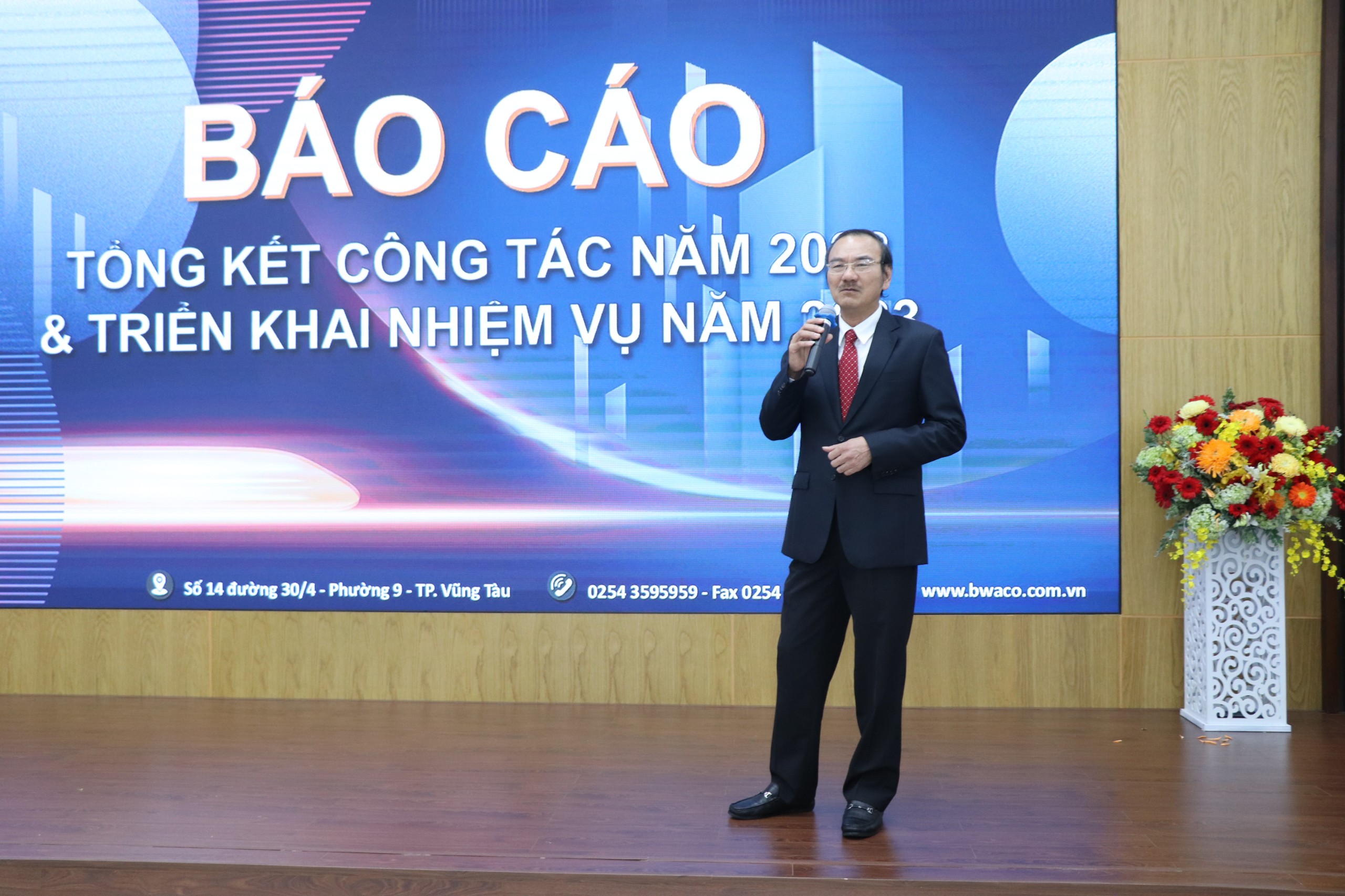 | Ông Nguyễn Lương Điền, Tổng Giám đốc BWACO báo cáo kết quả sản xuất kinh doanh của công ty năm 2022 |