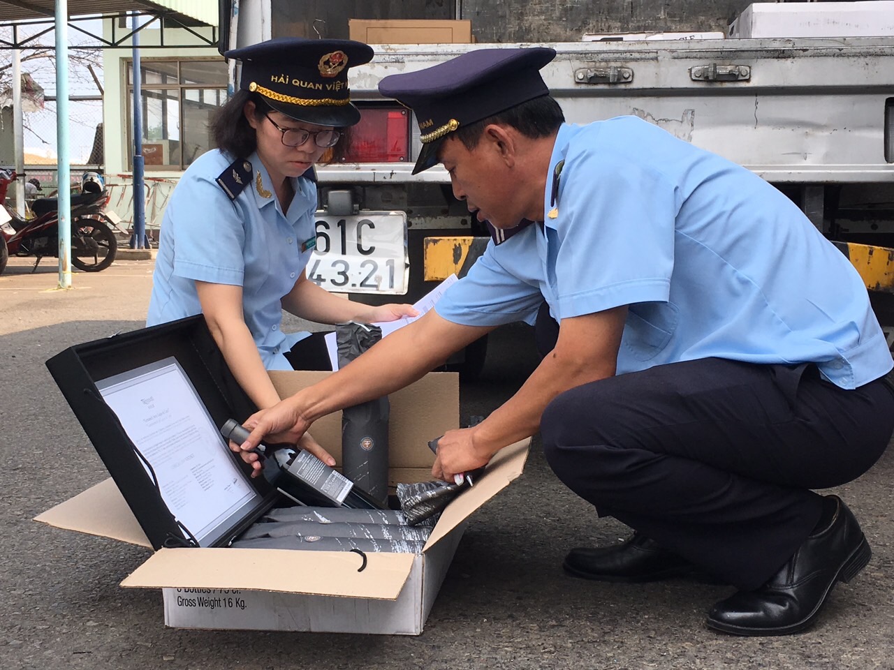 | Cán bộ hải quan kiểm tra hàng hóa xuất nhập khẩu tại Chi cục Hải quan cửa khẩu Cảng Phú Mỹ. |