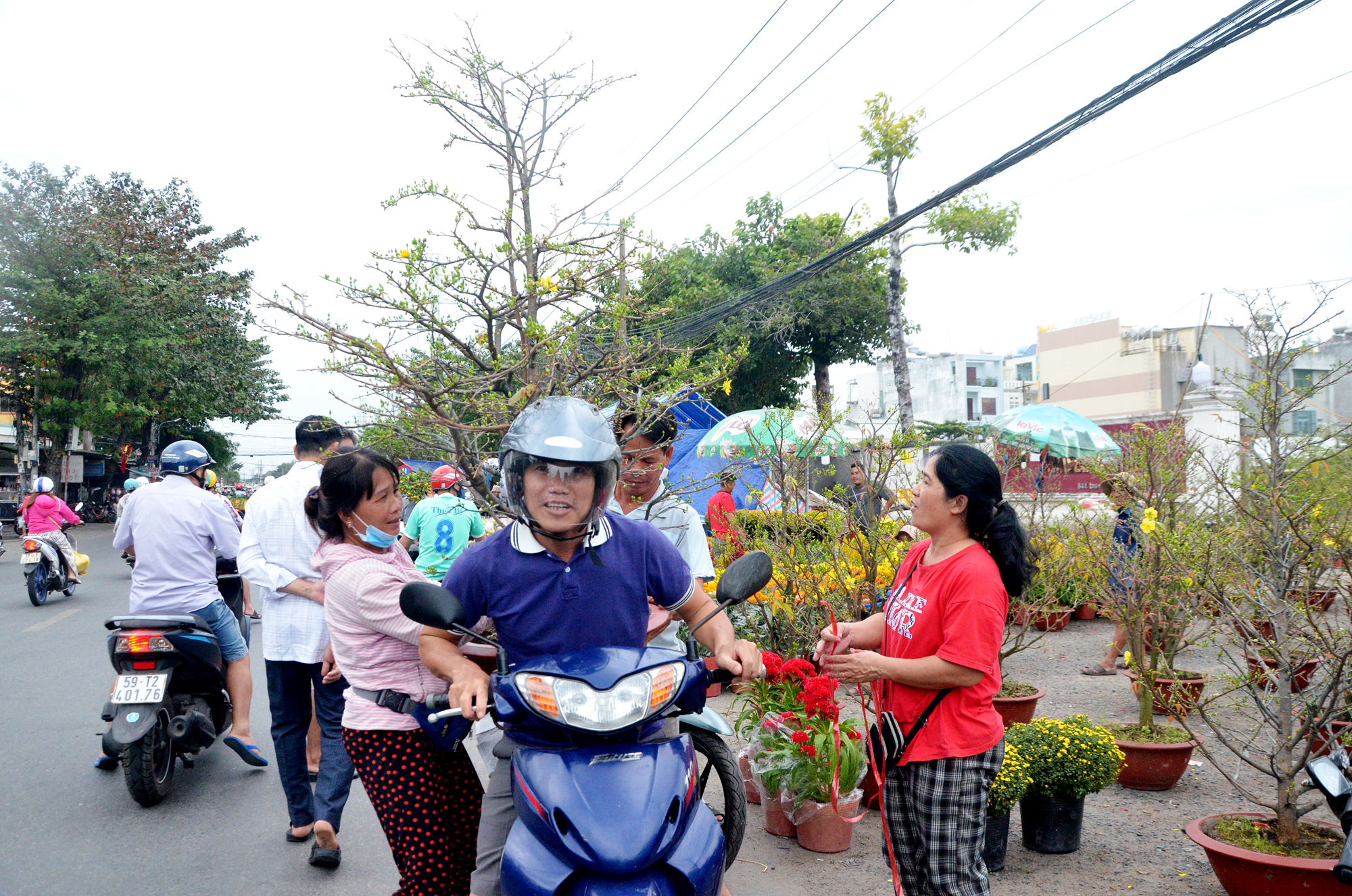 Chiều 29 tháng Chạp (ngày 20/1), ghi nhận tại các điểm kinh doanh hoa Tết trên một số tuyến đường như Nguyễn Thái Học, Nguyễn Tri Phương, Bình Giã, 30/4…, không còn cảnh tấp nập người mua. Theo các tiểu thương, so với cùng thời điểm năm trước sức mua năm nay chậm hơn rất nhiều.