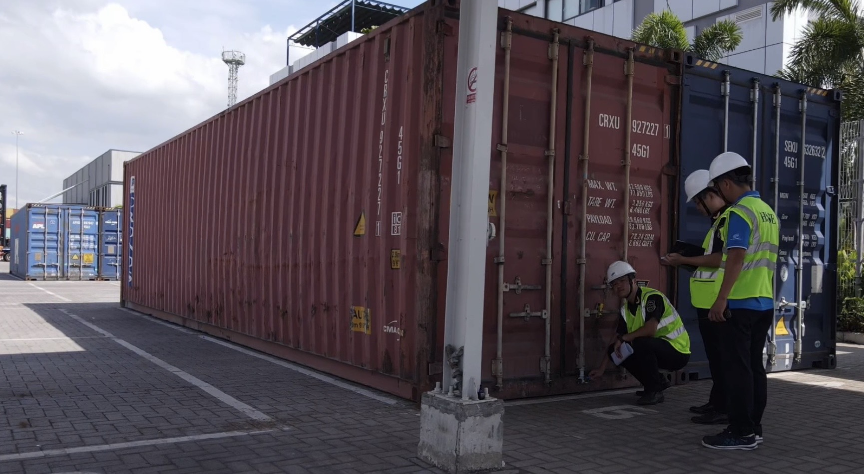 | Công chức Chi cục Hải quan cửa khẩu cảng Cái Mép kiểm tra hàng container. |