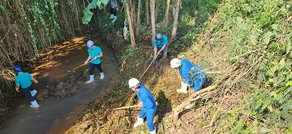 | Công nhân BWACO tham gia thu gom rác tại khu vực suối Nhum (huyện Châu Đức). |