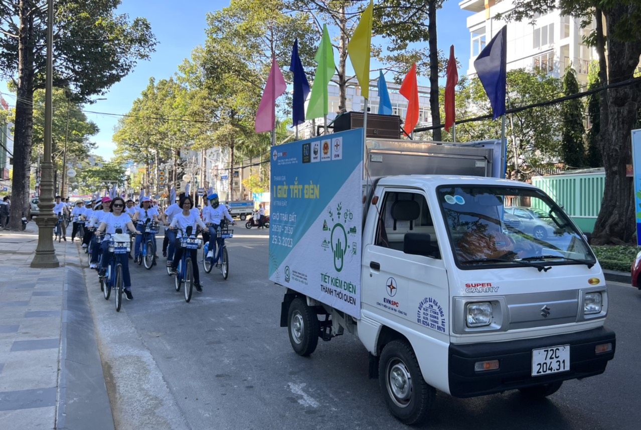 70 cán bộ, công nhân viên chức của ngành điện tham gia đạp xe diễu hành cùng với băng băng rôn, bảng hiệu đã di chuyển trên các tuyến đường nội ô thành phố như Trần Hưng Đạo - Hoàng Hoa Thám - Thuỳ Vân – Lê Hồng Phong – Lê Lợi – Lê Lợi…