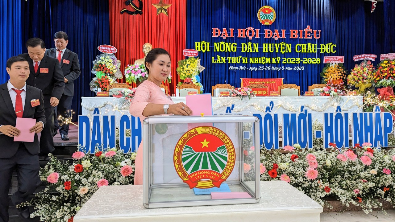 | 184 đại biểu dự đại hội đã bỏ phiếu bầu Ban Chấp hành Hội Nông dân huyện Châu Đức khóa VI, nhiệm kỳ 2023-2028. |