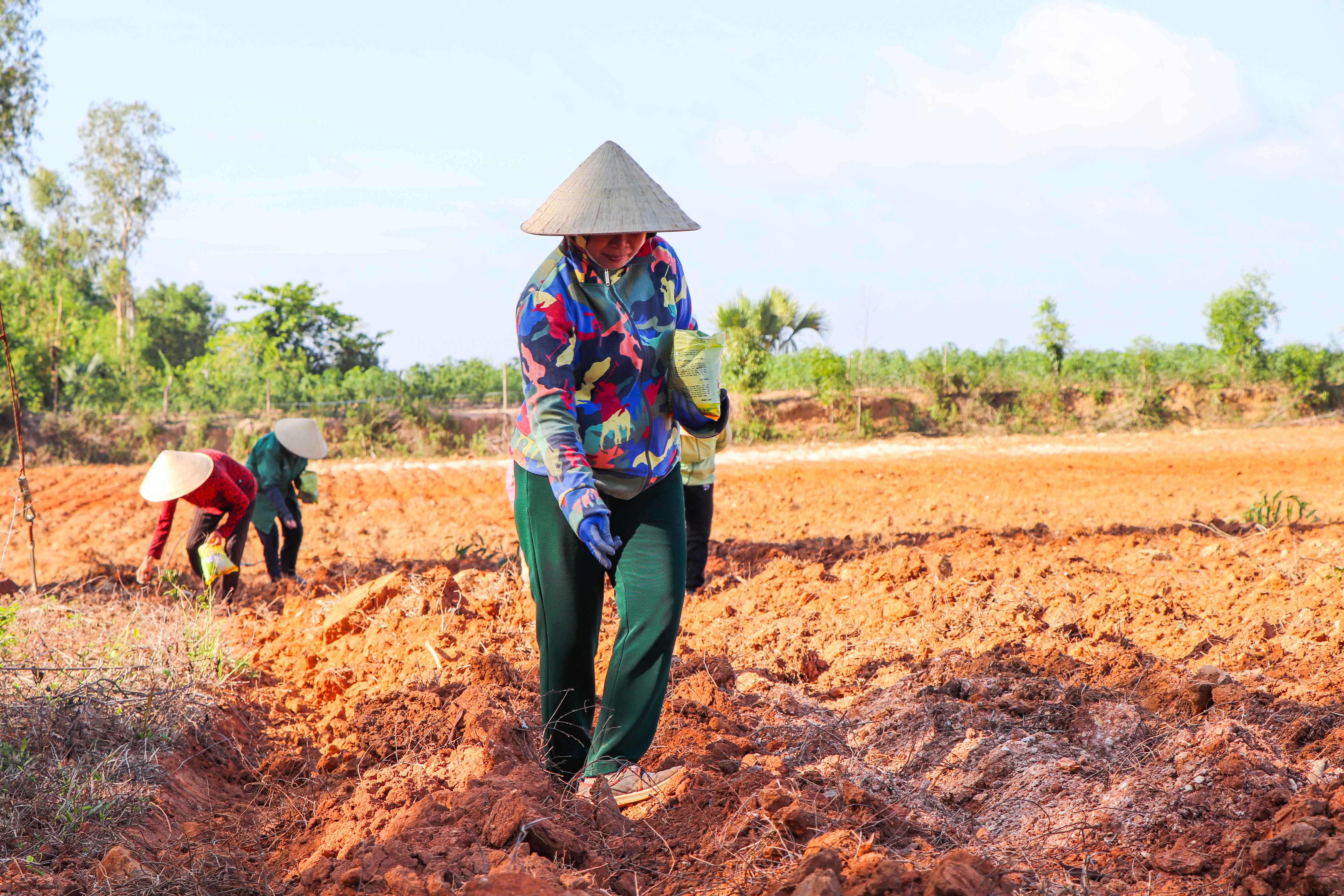 | Nông dân Suối Rao tranh thủ xuống giống cho kịp thời vụ. |