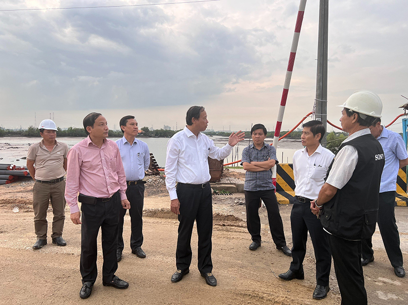 | Ông Nguyễn Văn Thọ, Chủ tịch UBND tỉnh khảo sát địa điểm diễn ra Lễ khởi công dự án cầu Phước An. |