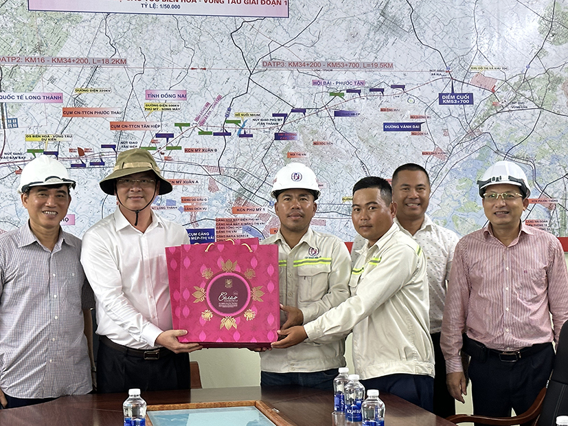 | Liên danh nhà thầu dự án đường cao tốc Biên Hòa-Vũng Tàu trình bày với Phó Chủ tịch UBND tỉnh Nguyễn Công Vinh về tiến độ thực hiện dự án. |