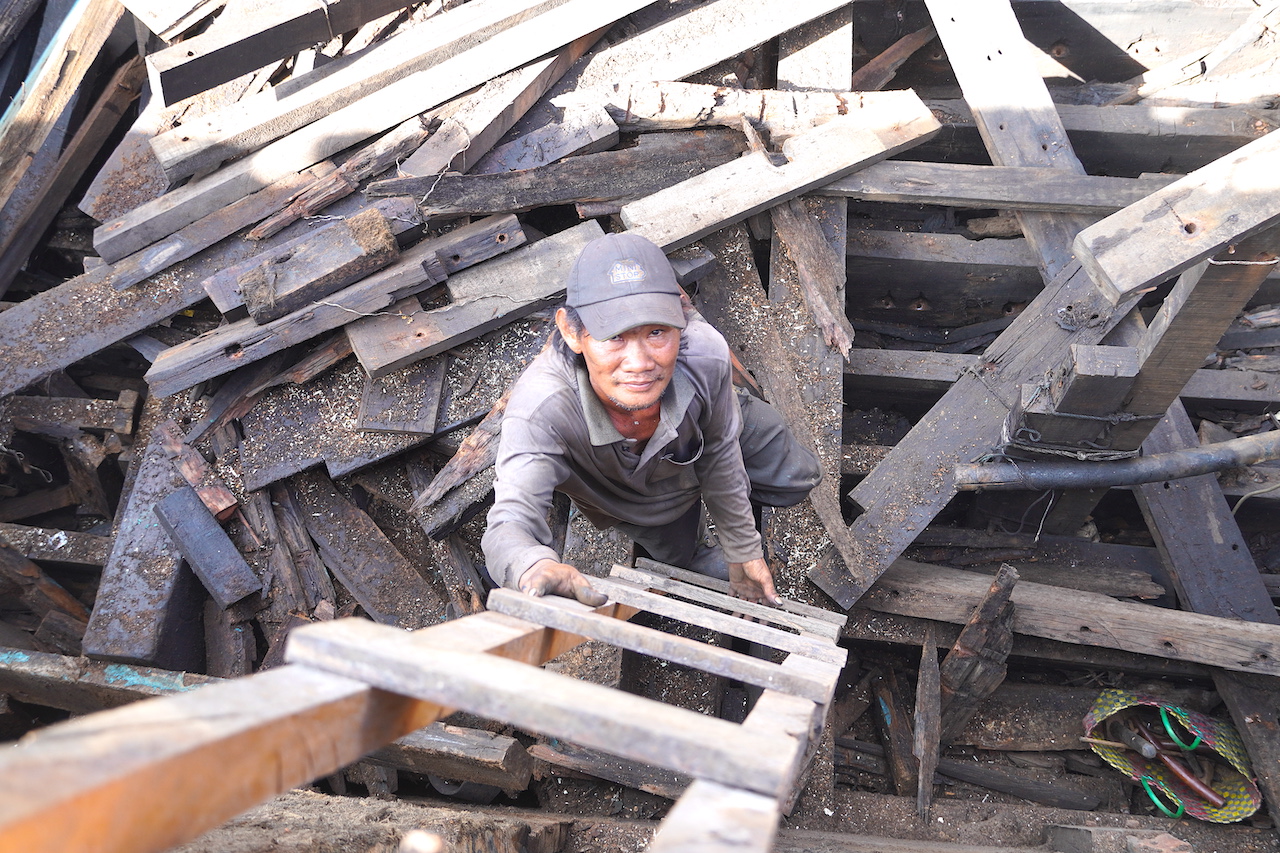 | Gỗ tháo dỡ được phân loại, xếp thành đống để bán cho thương lái và những người có nhu cầu. |