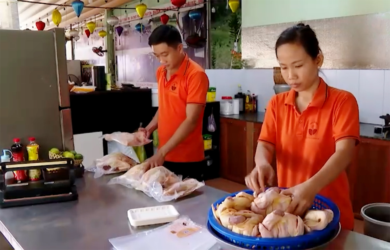 | Đóng gói thịt gà tại trang trại gà Anh Nguyên. |