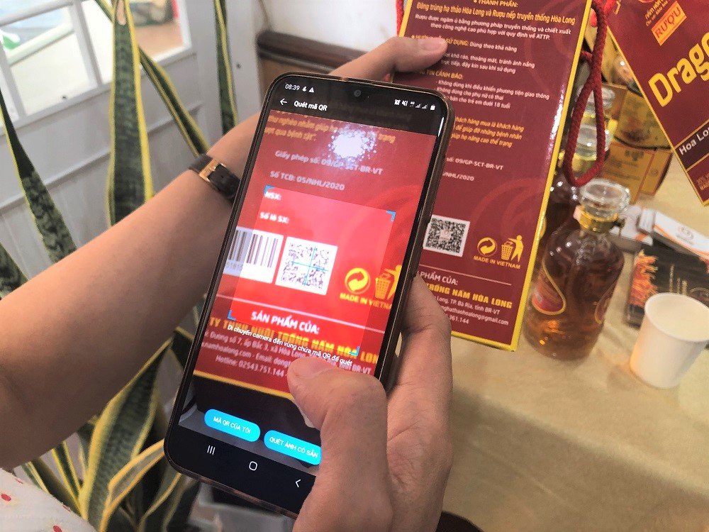 | Người tiêu dùng ngày càng quan tâm sử dụng sản phẩm có nguồn gốc xuất xứ rõ ràng. Trong ảnh: Sản phẩm ngũ cốc và đông trùng hạ thảo của Công ty TNHH Nuôi trồng nấm Hòa Long (TP. Bà Rịa) được dán mã QR truy xuất nguồn gốc sản phẩm. Ảnh: KIM HỒNG. |