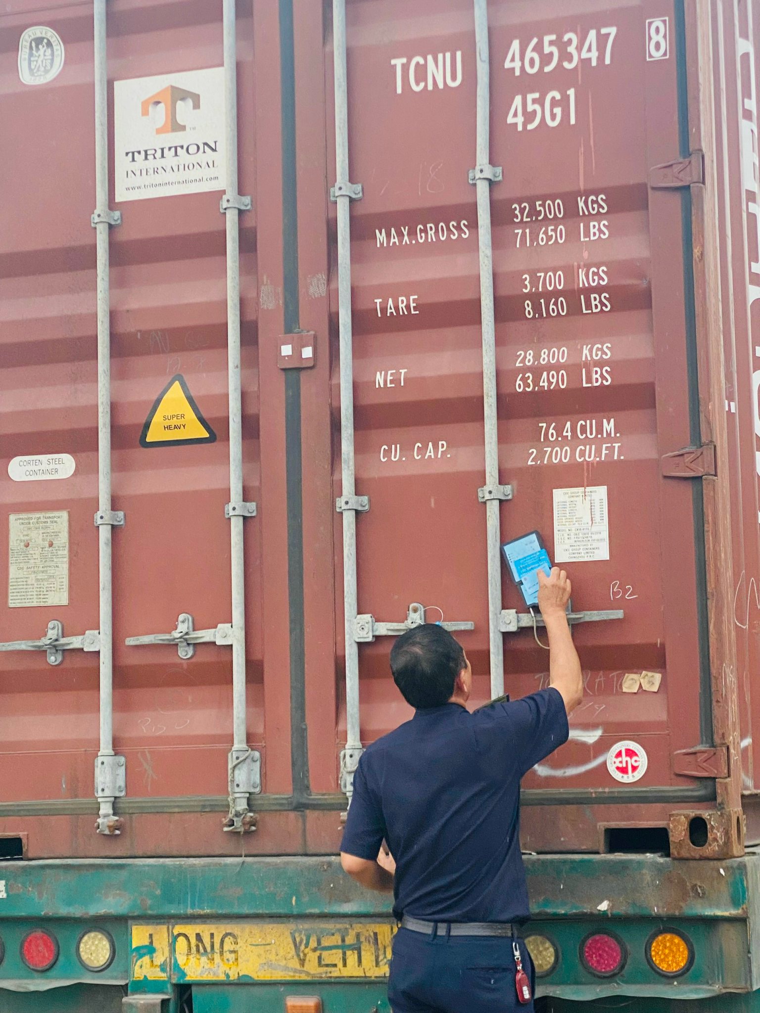 | Công chức Hải quan thuộc Chi cục HQ cửa khẩu cảng Cái Mép kiểm tra, đối chiếu số seal định vị hải quan trước khi cho mở container để kiểm tra thực tế hàng hóa. |