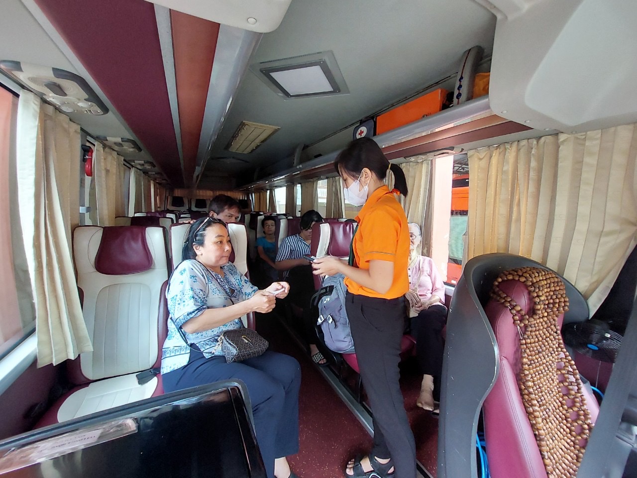 | Nhân viên nhà xe Phương Trang Vũng Tàu soát vé điện tử cho hành khách |