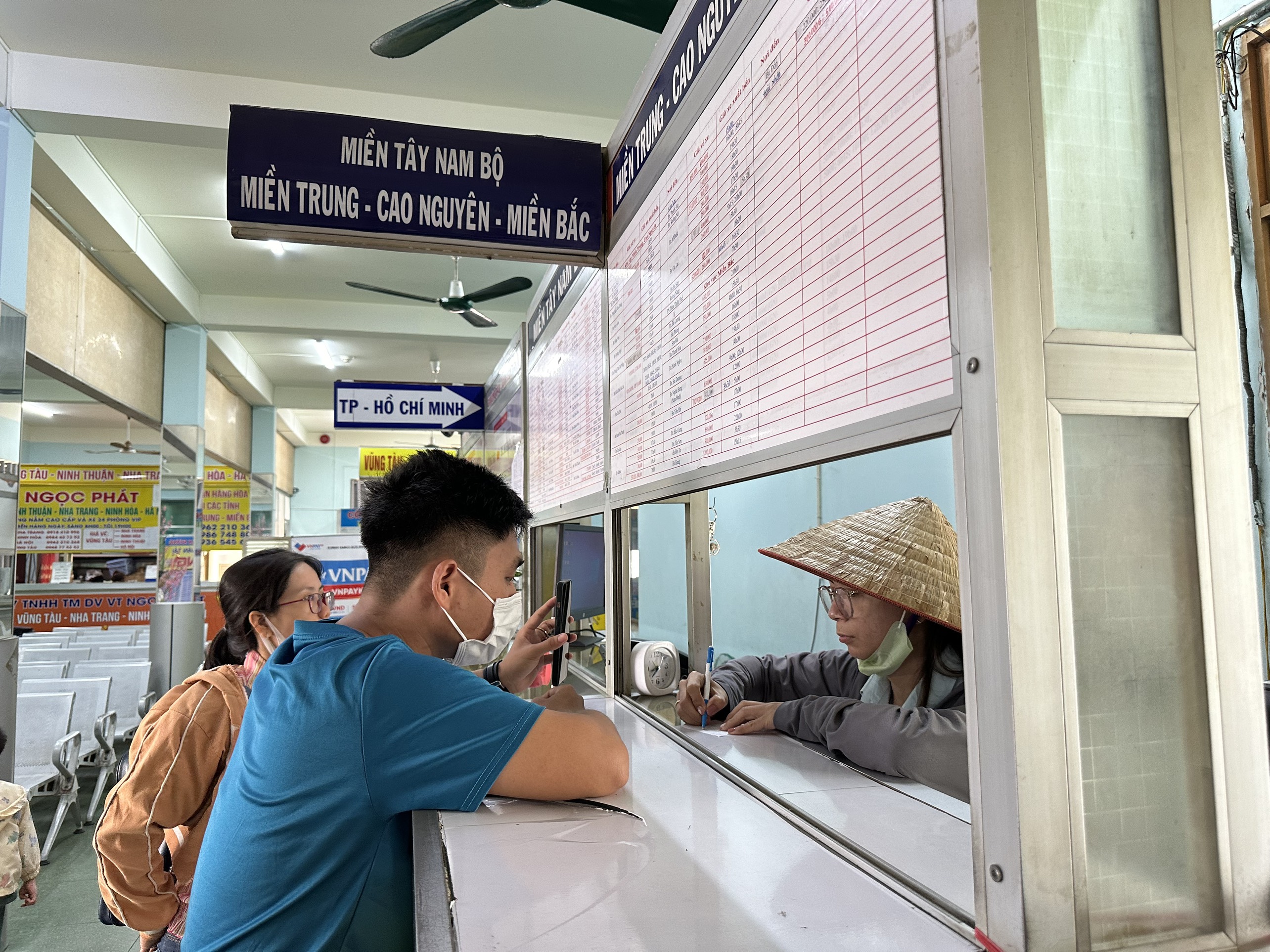 | Vài khách mua vé trong chuyến xe ngày cuối năm. |