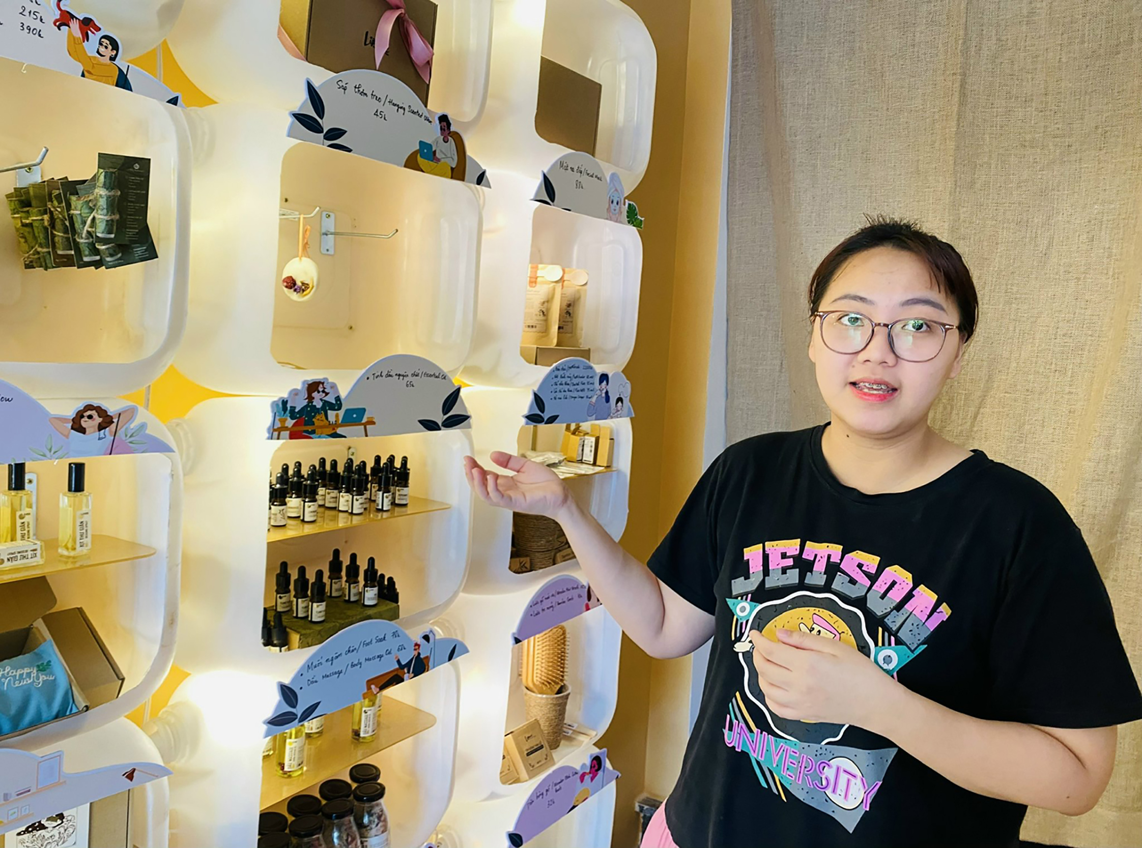| Lâm Thụy Phương giới thiệu các mặt hàng thân thiện môi trường tại Limart - Zero waste (số 27 Lý Tự Trọng, phường 1, TP.Vũng Tàu). |