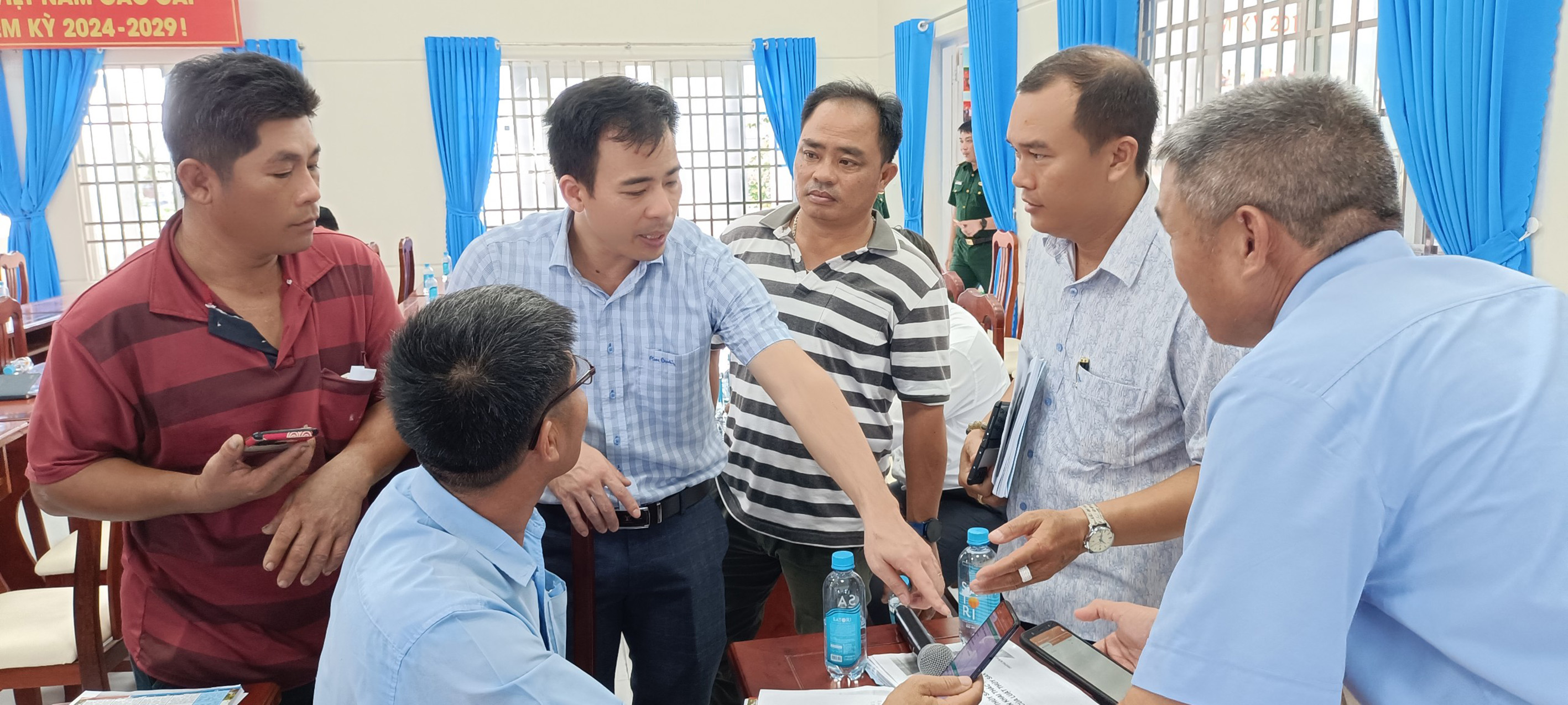 | Cán bộ Cục Thủy sản hướng dẫn ngư dân và đại diện cảng cá sử dụng phần mềm truy xuất nguồn gốc điện tử thủy sản đánh bắt. |