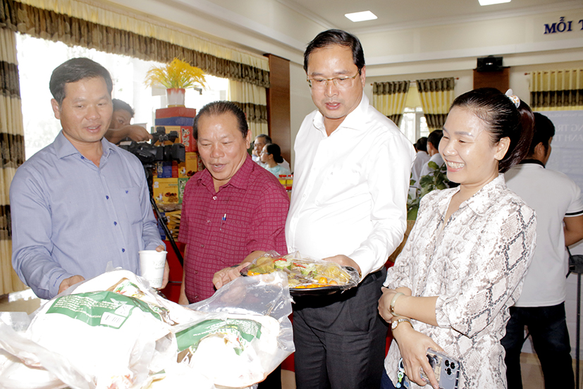 | Lãnh đạo huyện Châu Đức tham quan các sản phẩm OCOP 3 sao, 4 sao của địa phương tại hội nghị. |