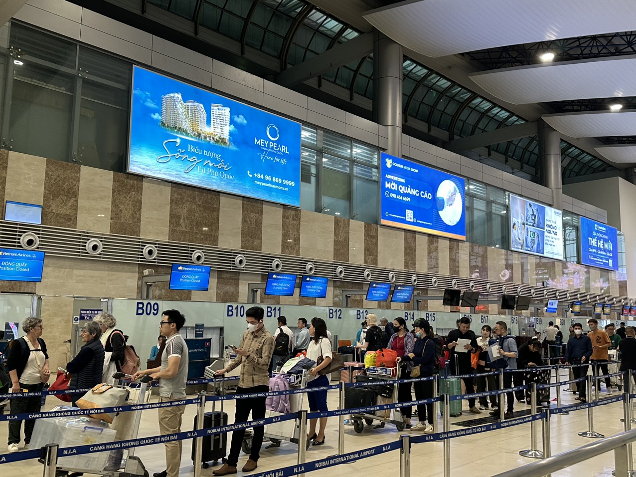 | Khách làm thủ tục lên máy bay tại sân bay Nội Bài. |