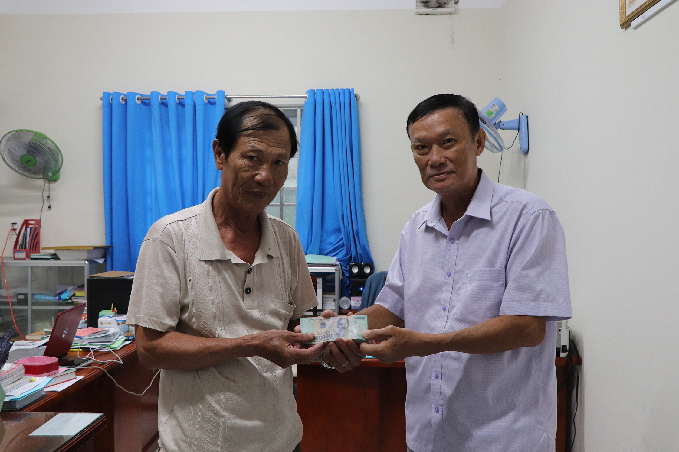 | Ông Huỳnh Văn Sơ (phải), Phó Chủ tịch Hội Nông dân huyện Long Điền trao vốn vay cho hộ ông Vũ Văn Môn (ấp Phước Thắng, xã Phước Tỉnh). |