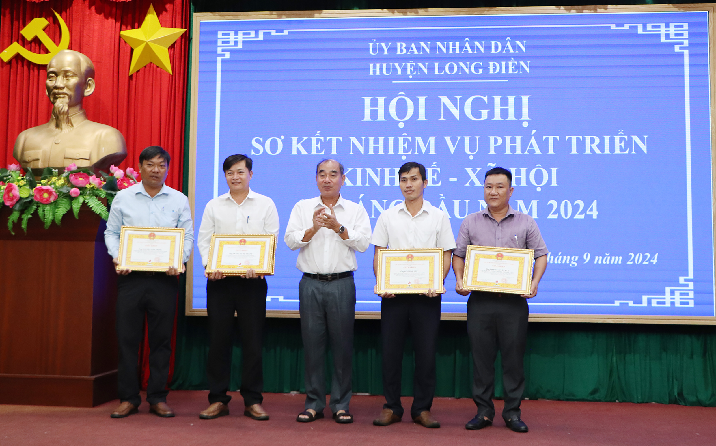 Dịp này, UBND huyện đã khen thưởng đột xuất 1 tập thể, 4 cá nhân vì có thành tích xuất sắc trong công tác bồi thường, hỗ trợ và tái định cư thuộc dự án đường nối vào cao tốc Biên Hòa- Vũng Tàu (đoạn qua huyện Long Điền).