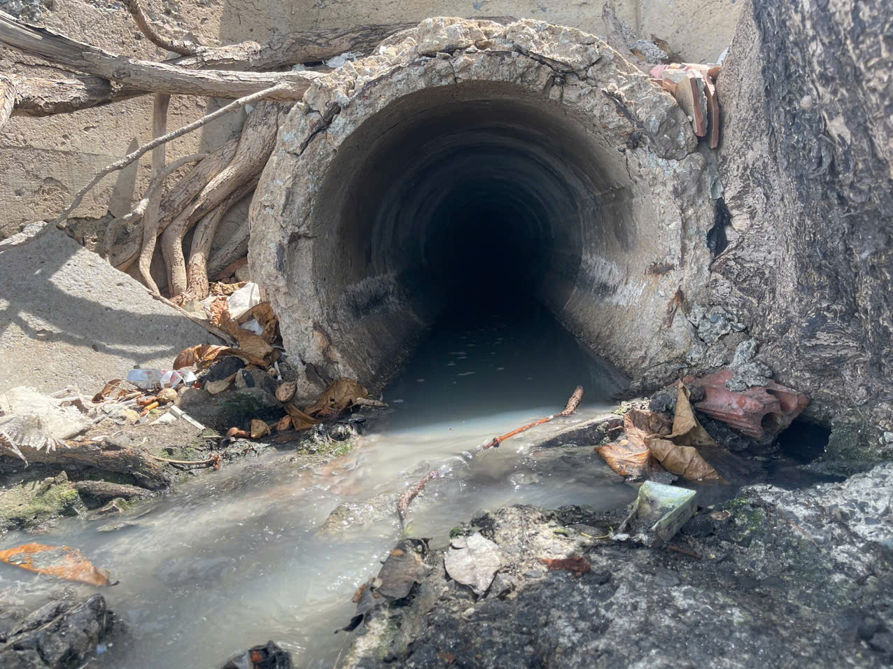 | Ống thoát nước ra biển có màu đen do quán ốc Tự Nhiên 2 xả thải |