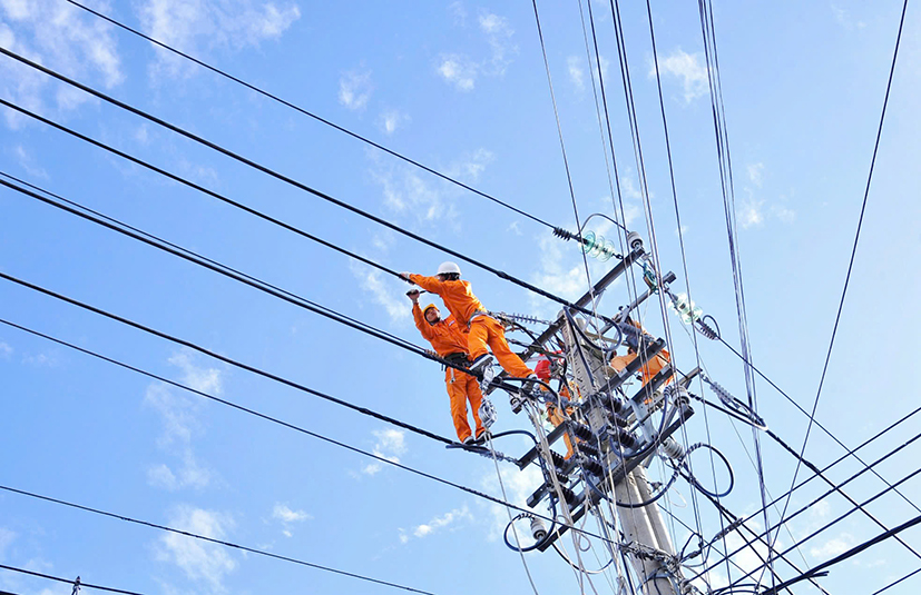 | Nhân viên Công ty Điện lực Bà Rịa - Vũng Tàu bảo trì lưới điện. |