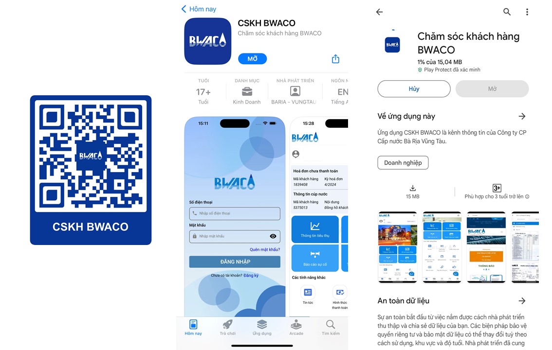 Khách hàng có thể tải ứng dụng CSKH BWACO từ App Store (đối với điện thoại sử dụng hệ điều hành IOS) và CH Play (đối với điện thoại sử dụng hệ điêu hành Android).