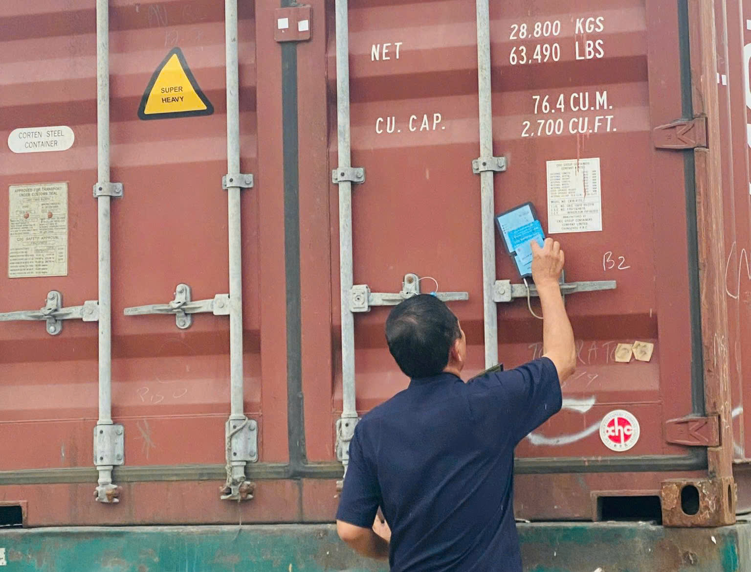 | Công chức Chi cục hải quan cửa khẩu cảng Cái Mép kiểm tra hàng container tại cảng. |