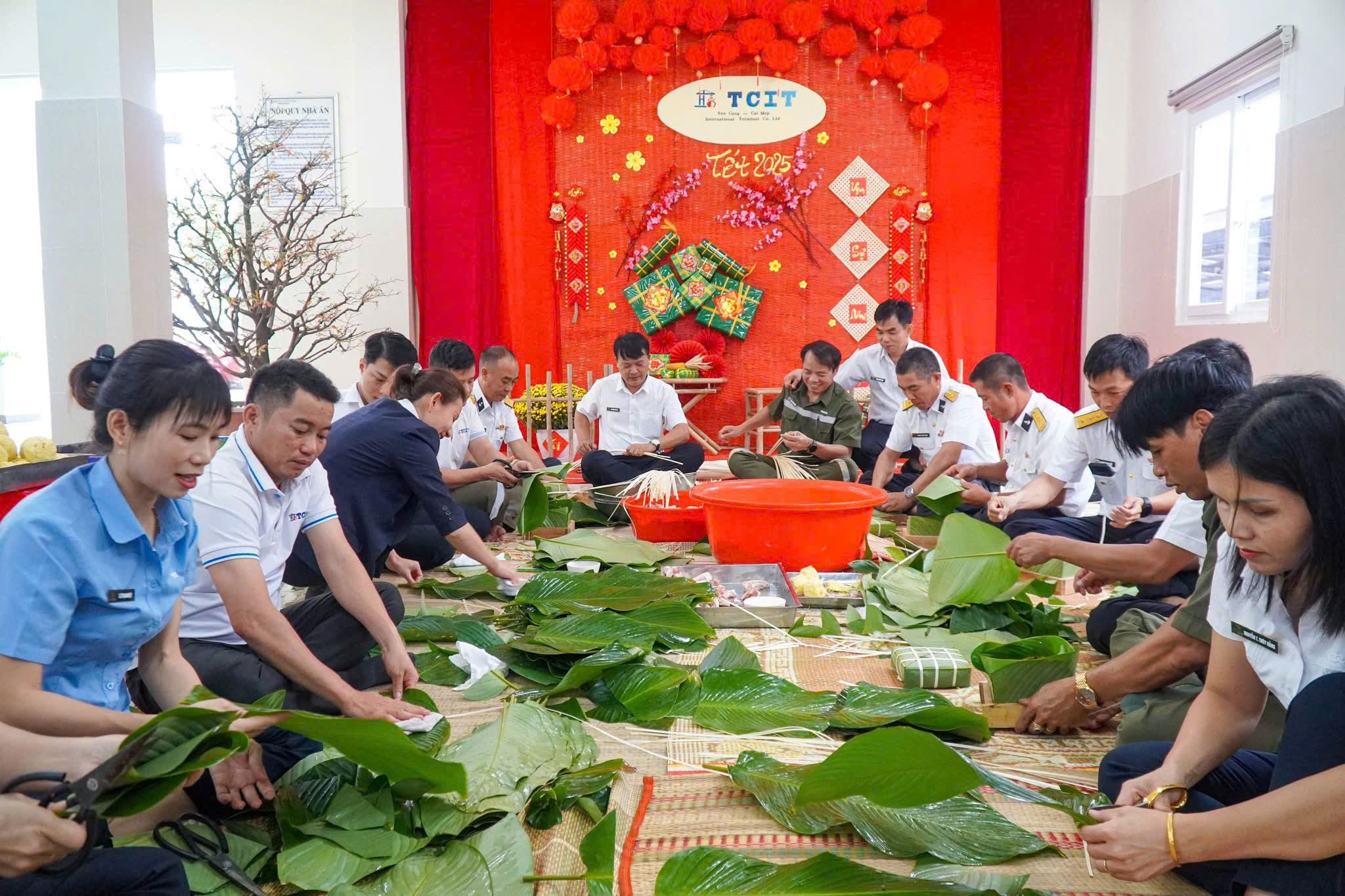 Ngày 23/1, Cảng Quốc tế Tân Cảng - Cái Mép (TCIT) tổ chức hoạt động gói bánh chưng nghĩa tình với sự tham gia nhiệt tình của đông đảo cán bộ, nhân viên TCIT và các chiến sĩ Lữ đoàn 167, Vùng 2 Hải quân.