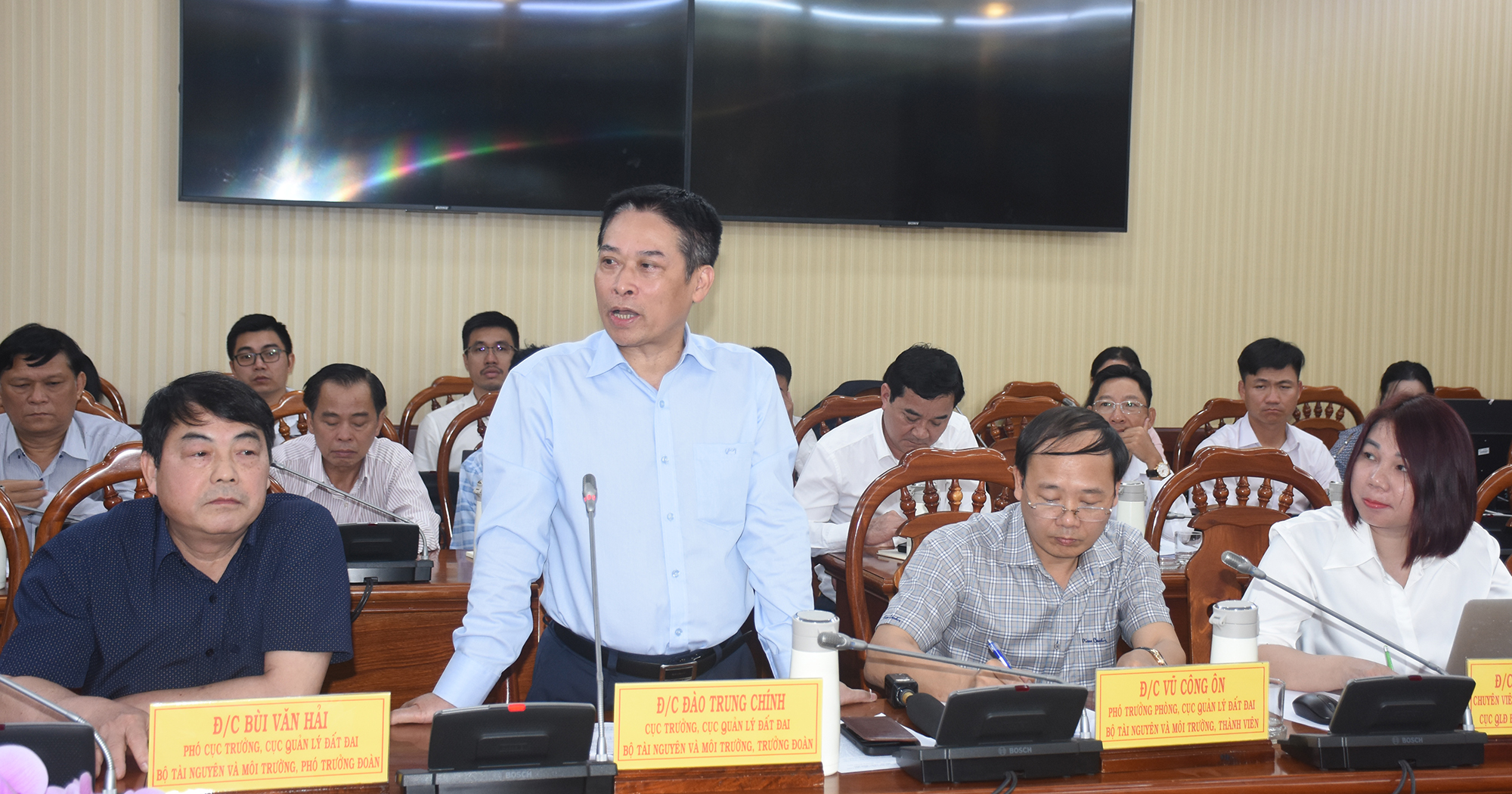 | Ông Đào Trung Chính, Cục trưởng Cục Quản lý đất đai Bộ Nông nghiệp và Môi trường phát biểu tại buổi làm việc |