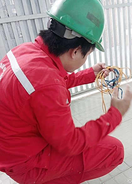 | Một người tự xưng là công nhân chào bán dây điện cho người dân. (Ảnh: Người dân cung cấp) |