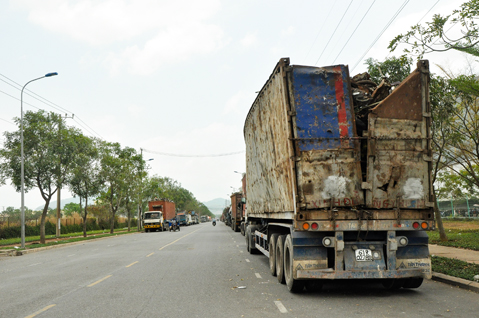 Ngày 6-4, có mặt tại KCN Phú Mỹ II (huyện Tân Thành), chúng tôi ghi nhận có hơn chục xe tải chở sắt thép phế liệu đang đậu hai bên đường để “né” CSGT. Đa số các xe tải này đều cơi nới thùng và chất hàng cồng kềnh, gây mất n toàn khi tham gia giao thông.