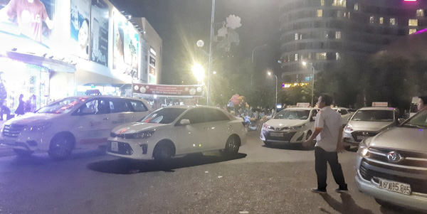 Tình trạng dừng đỗ ô tô sai quy định trước siêu thị Lotte Mart Vũng Tàu (đường 3/2, TP.Vũng Tàu) thời gian gần đây diễn ra khá phổ biến. Đặc biệt, vào buổi tối ngày cuối tuần, tại cổng trước lối vào siêu thị, đoạn vòng xoay đối diện với Tượng đài liệt sĩ TP.Vũng Tàu thường xuyên có các loại ô tô, nhiều nhất là xe taxi đậu tràn lan. Thậm chí, nhiều khi có tới 3-5 xe taxi dàn hàng ngang (ảnh chụp tối Chủ nhật 15/12), dừng đỗ chiếm hết lòng đường. Đề nghị cơ quan chức năng tăng cường kiểm tra, kiểm soát và xử lý nghiêm các trường hợp vi phạm quy định về dừng, đỗ phương tiện, nhằm bảo đảm trật tự ATGT tại khu vực này. (Phương Nam)