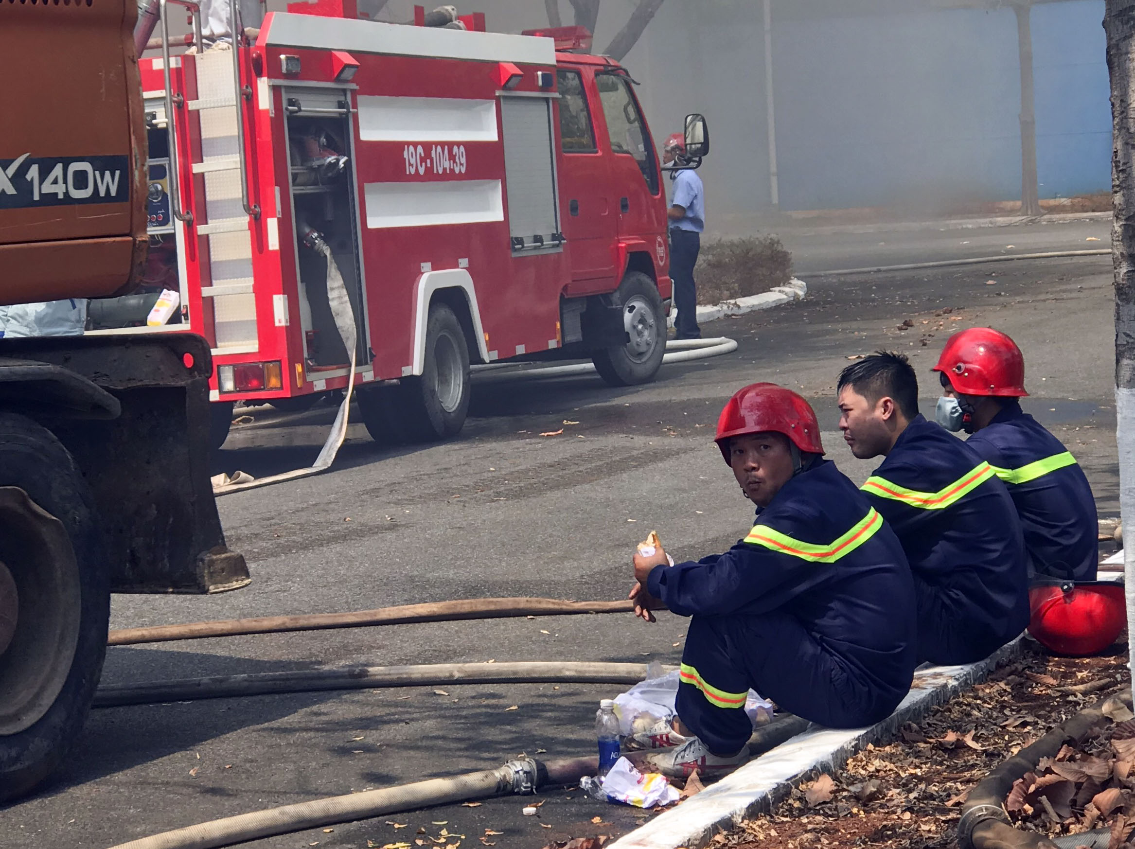 Ngay sau khi nhận được tin báo, lực lượng Cảnh sát PCCC (PC07)-Công an tỉnh đã huy động 10 xe chữa cháy cùng hơn 100 cán bộ, chiến sĩ đến phối hợp với lực lượng PCCC tại chỗ để dập lửa.