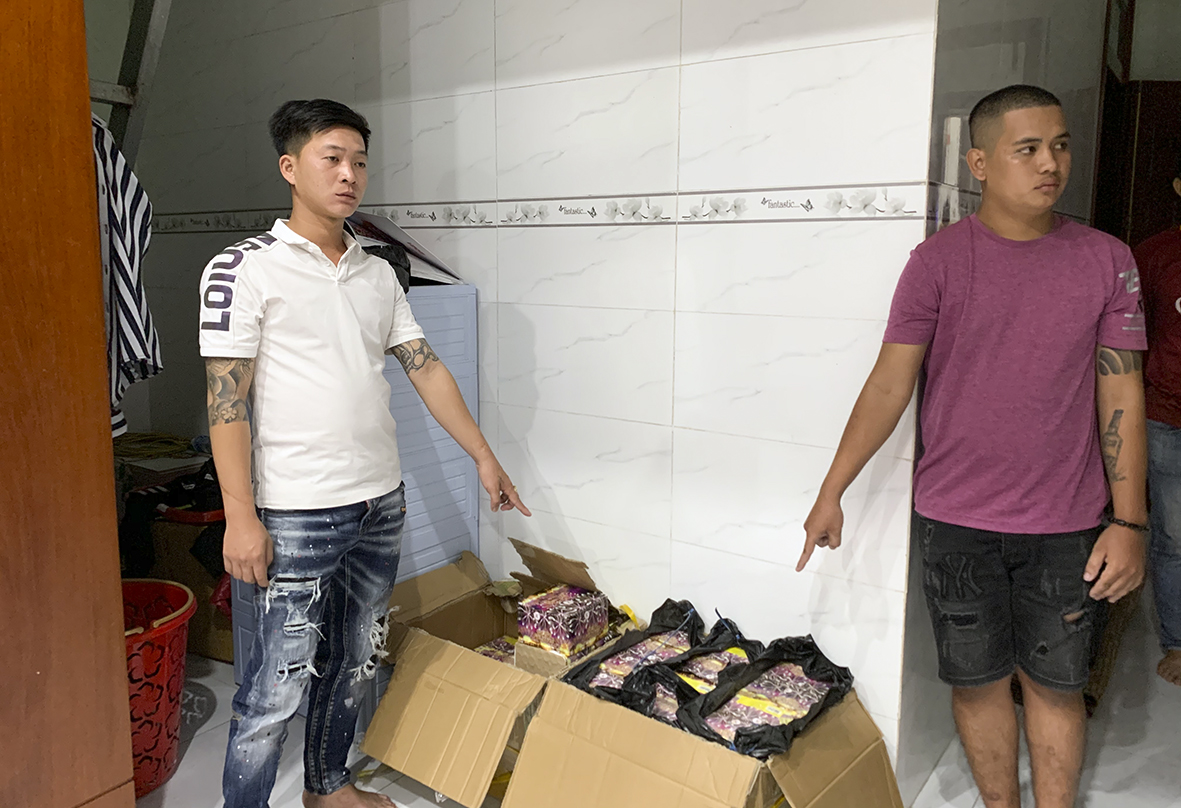 Trước đó, lúc 15 giờ ngày 21/12, tại địa bàn xã Phước Tỉnh, huyện Long Điền, Công an huyện Long Điền phối hợp với Công an xã Phước Tỉnh phát hiện phát hiện, bắt quả tang đối tượng Trần Duy Phương (19 tuổi, trú tại thị trấn Long Điền) đang có hành vi mua bán pháo nổ, trên bao bì bệ pháo có in nhiều dòng chữ nước ngoài, mỗi bệ pháo có trọng lượng 1,7kg.