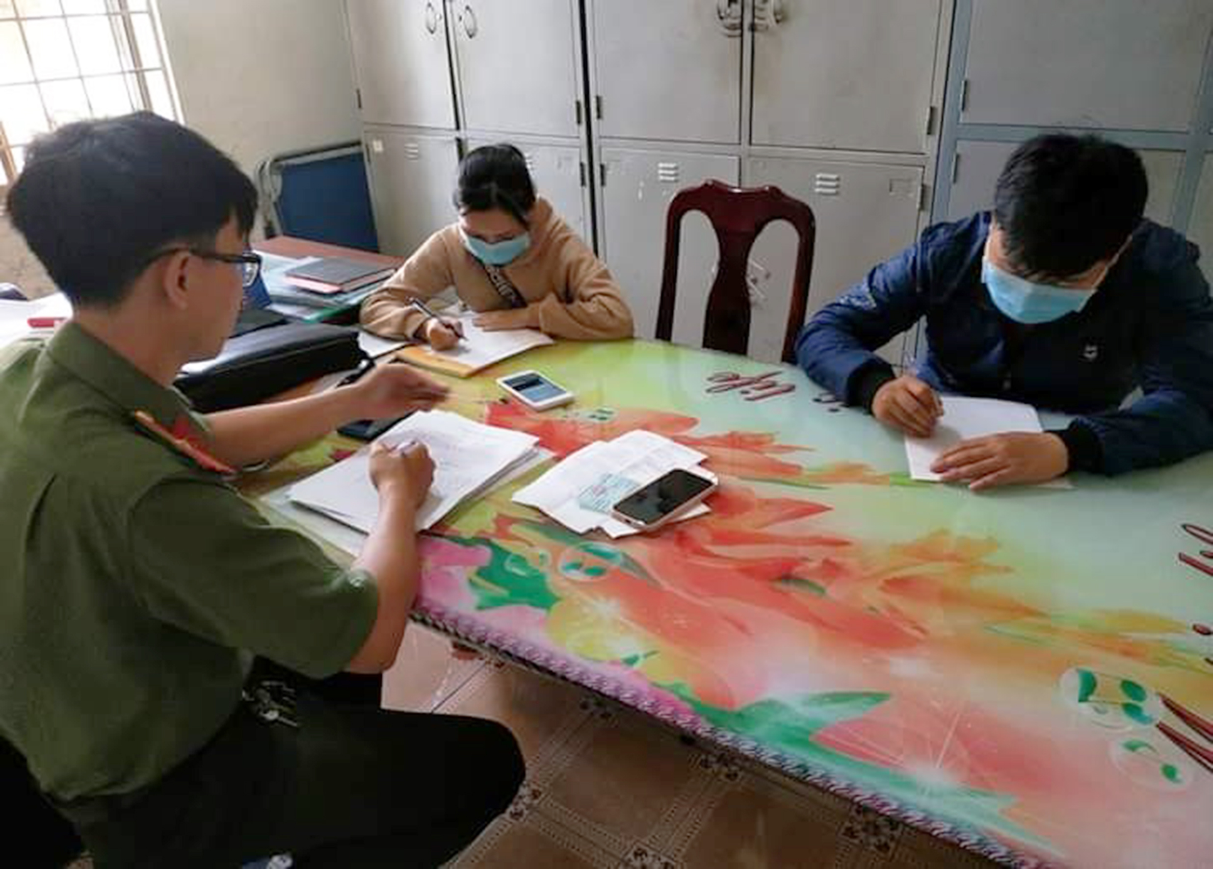 | Công an TX. Phú Mỹ làm việc với T. cùng bạn trai về việc đăng thông tin sai sự thật lên mạng xã hội Facebook. |