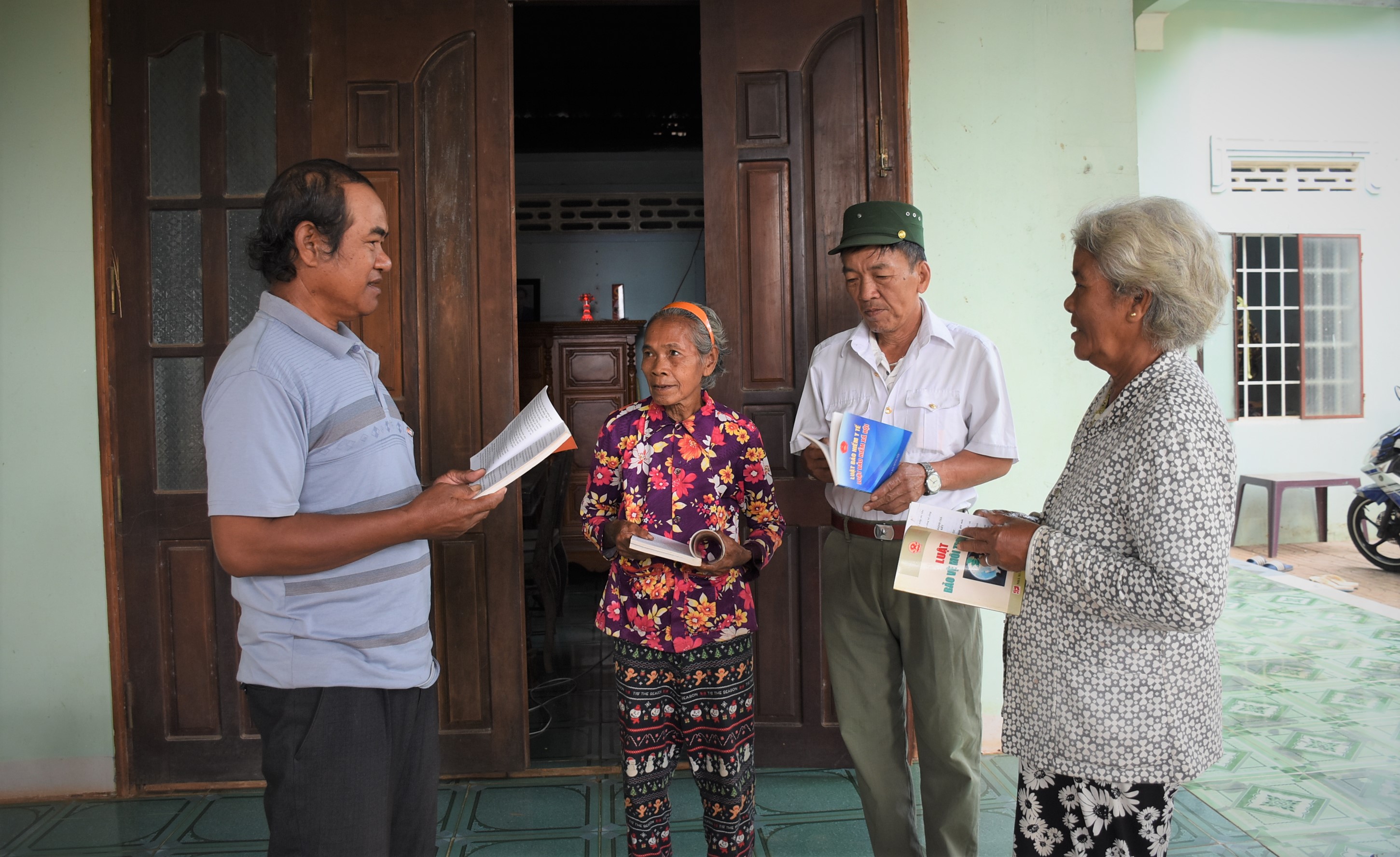 | Ông Đào Văn Giả (bìa trái, xã Đá Bạc, huyện Châu Đức), người có uy tín trong cộng đồng người DTTS tuyên truyền các chính sách, pháp luật cho người DTTS. |