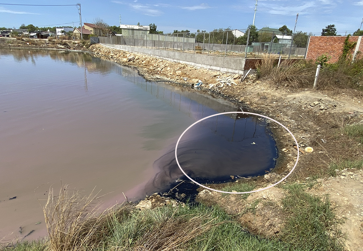 Ngay sau khi nhận được tin báo của người dân có nước màu đen chảy từ khu vực Công ty TNHH Nghê Huỳnh ra đầm nước trước cống số 6 (chảy ra sông Chà Và), ngày 24/3, Đoàn kiểm tra của Sở TN-MT phối hợp với Cảnh sát môi trường Công an tỉnh cùng các cơ quan chức năng của TX. Phú Mỹ kiểm tra Công ty TNHH Nghê Huỳnh (có trụ sở hoạt động tại thôn Cát Hải, xã Tân Hải, TX. Phú Mỹ) và khu vực xung quanh công ty.