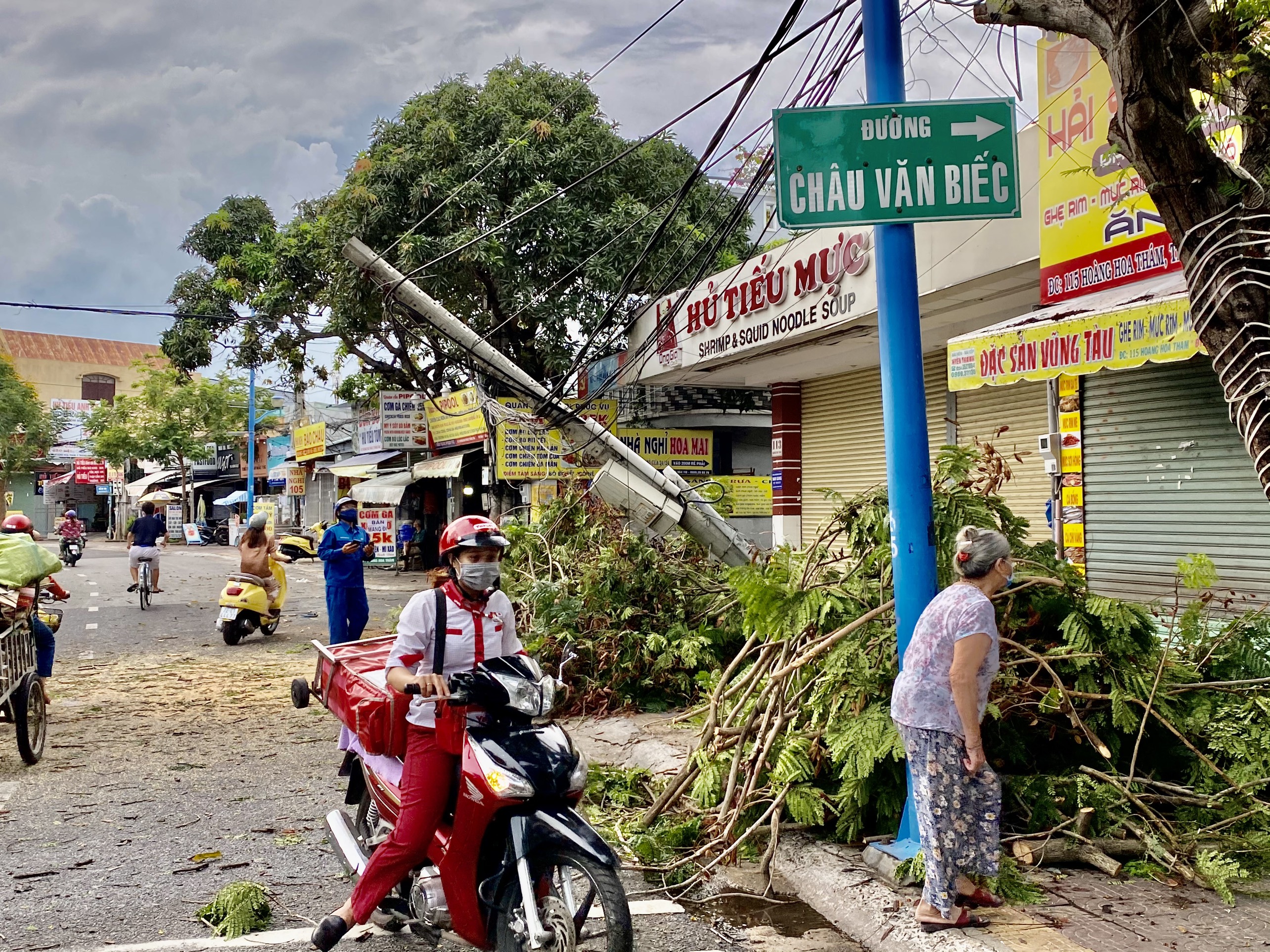 Tương tự, trước nhà số 115 Hoàng Hoa Thám, một cây lim sẹc bị gãy đổ, làm đứt hệ thống dây cáp internet của VNPT khiến kết nối viễn thông bị gián đoạn. Một số tuyến đường khác, cây xanh cũng gãy đổ làm đứt hệ thống dây điện và cáp viễn thông.