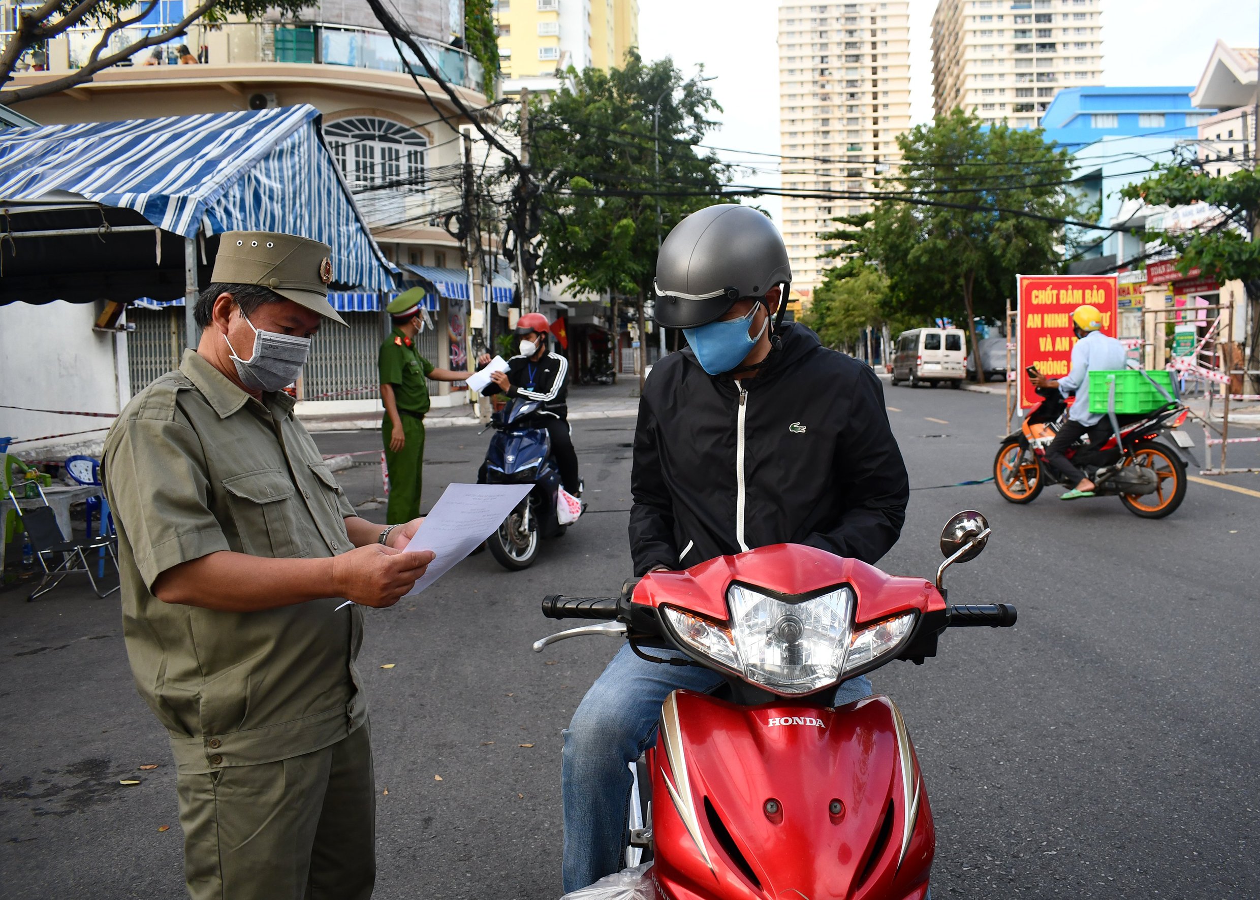 | Lực lượng chức năng phường Thắng Tam, TP.Vũng Tàu kiểm tra giấy đi đường tại chốt kiểm soát phòng, chống dịch COVID-19 trên địa bàn (ảnh mang tính minh họa). |
