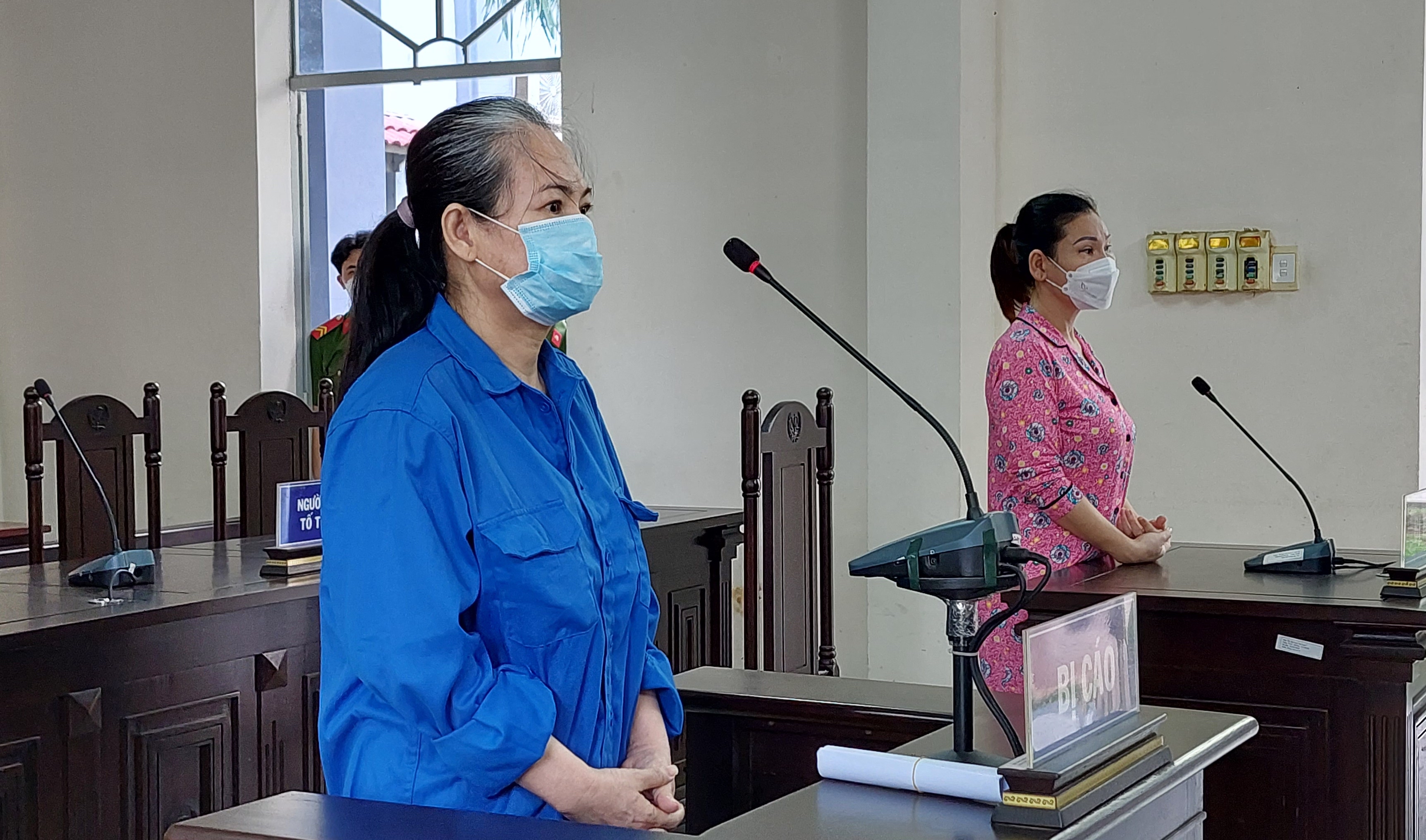 | Bị cáo Trần Thị Kim Loan (trái) và bà Lâm Thị Thu Trà tại phiên tòa sáng 30/3. |