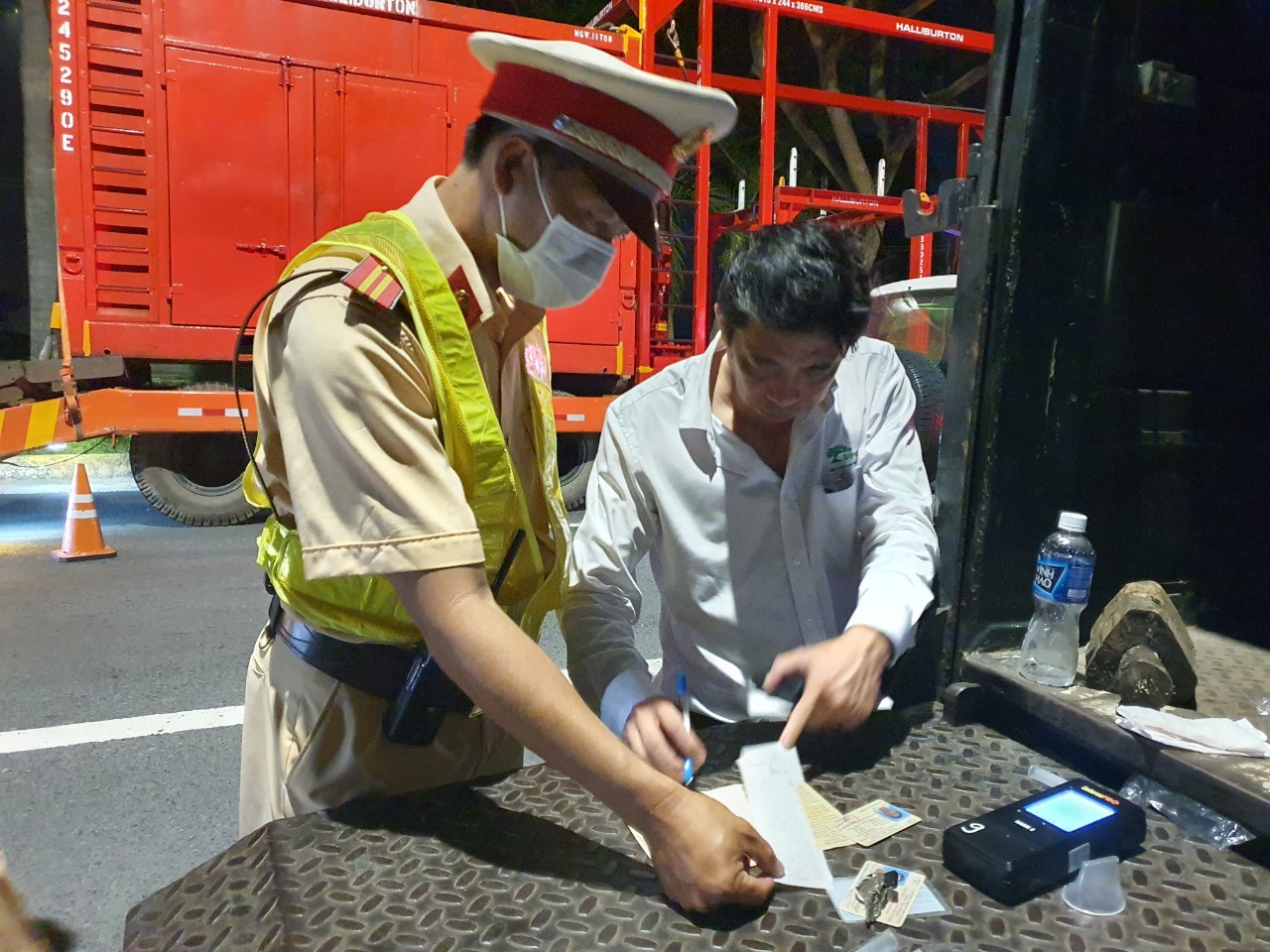 | CSGT lập biên bản xử lý một người vi phạm nồng độ cồn trên QL51. |