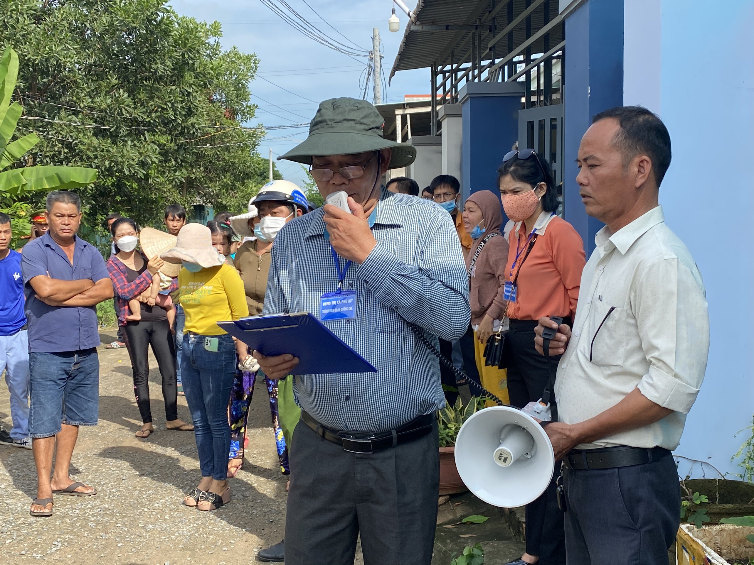 | Ông Lê Thành Tâm, Chủ tịch UBND phường Phú Mỹ đọc quyết định cưỡng chế. |