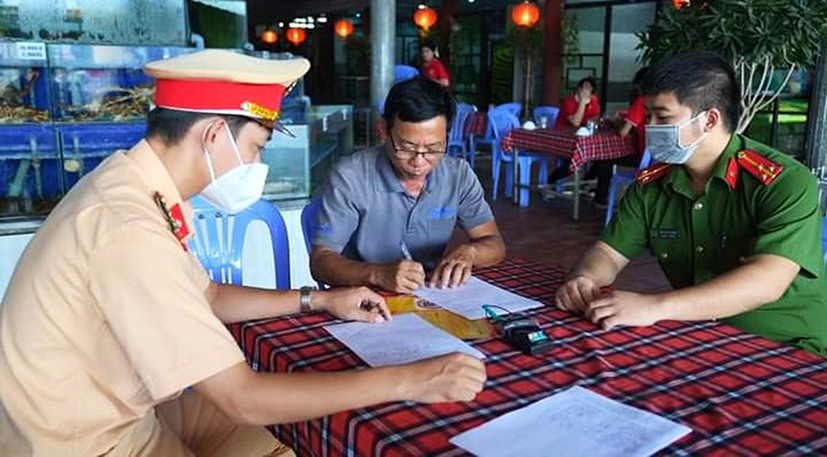 | Một chủ nhà hàng ký cam kết với lực lượng công an về việc không để khách sử dụng rượu bia tự điều khiển phương tiện về nhà. |